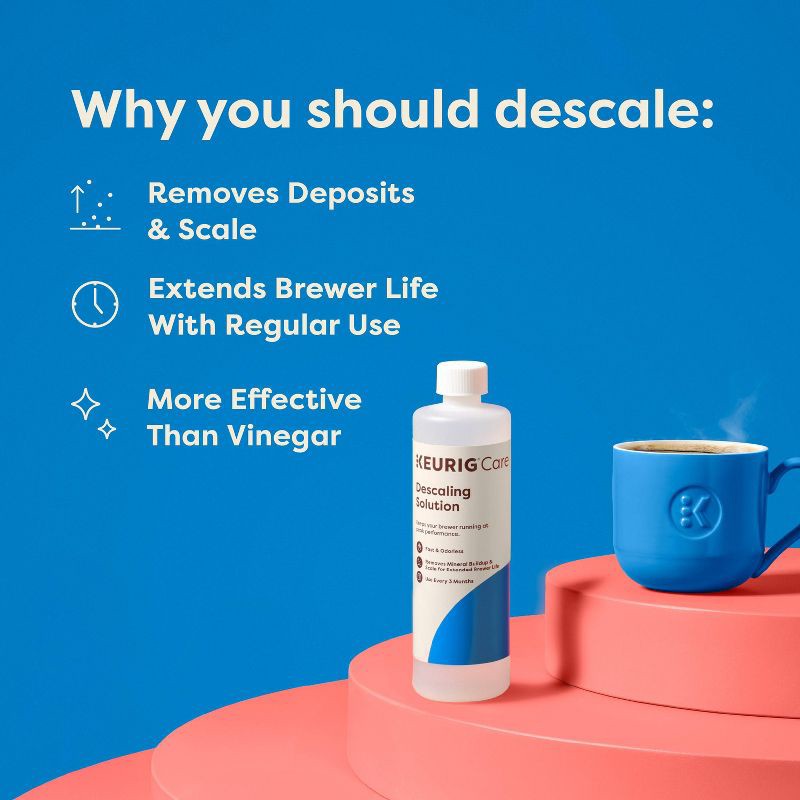 - Descale Solution helps extend the life of your brewer (when used regularly)