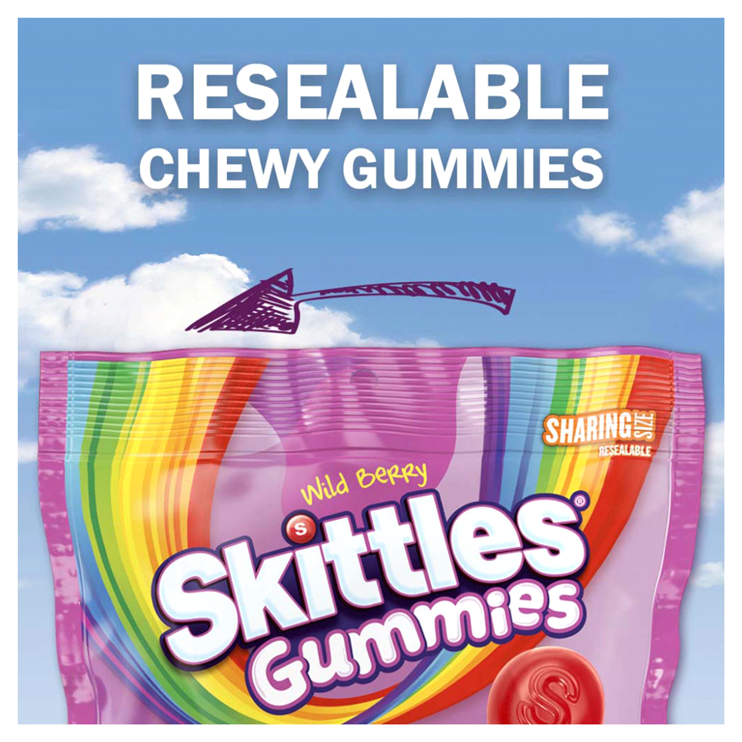 Skittles Gummies Wild Berry Gummy Candy, Sharing Size, 12 oz Resealable Bag