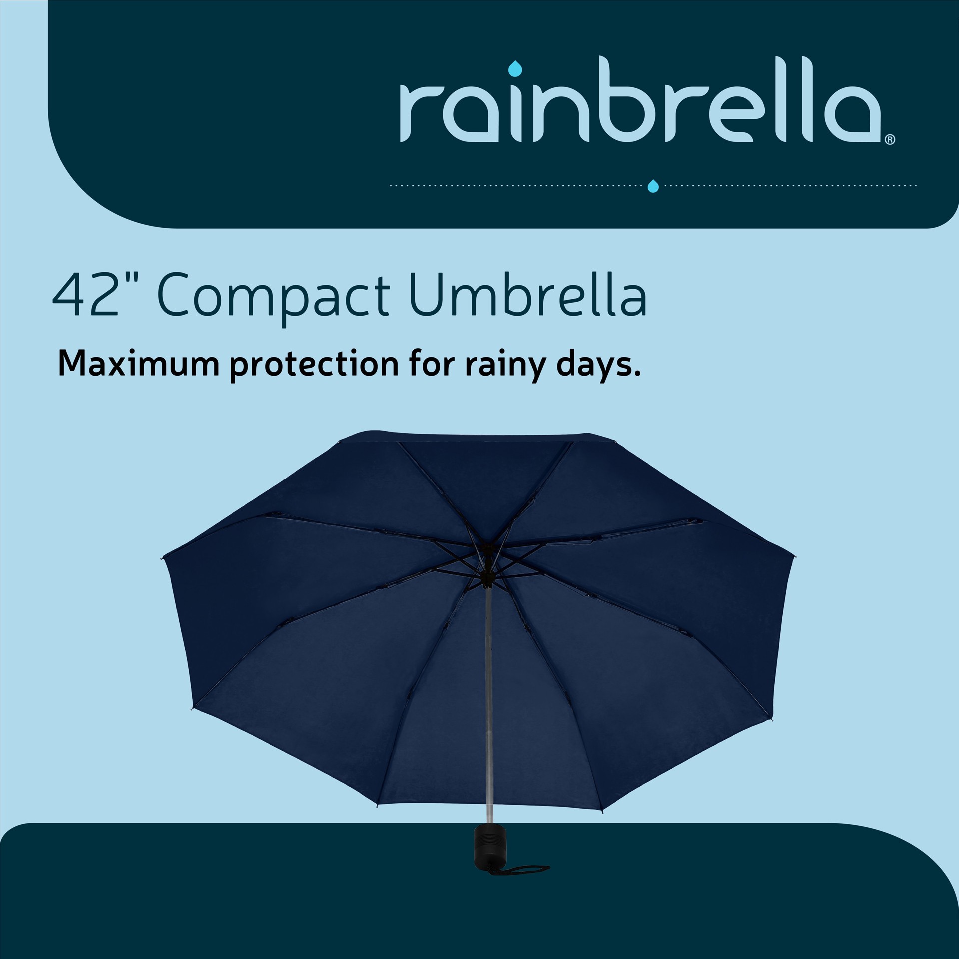 Rainbrella 42-in compact umbrella offers maximum protection for rainy days. Manual open umbrella with wide closure strap for easy storage. Umbrella features a storage sleeve and wrist strap to make tr…