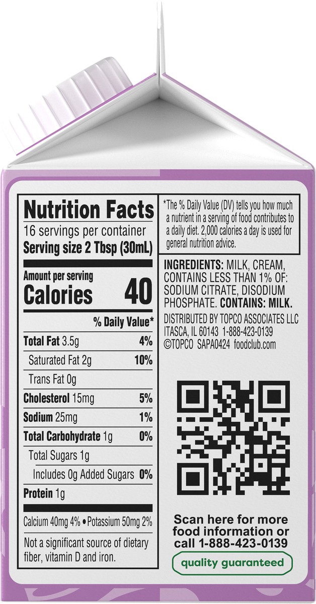 Food Club Ultra-Pasterurized Half & Half 1 pt