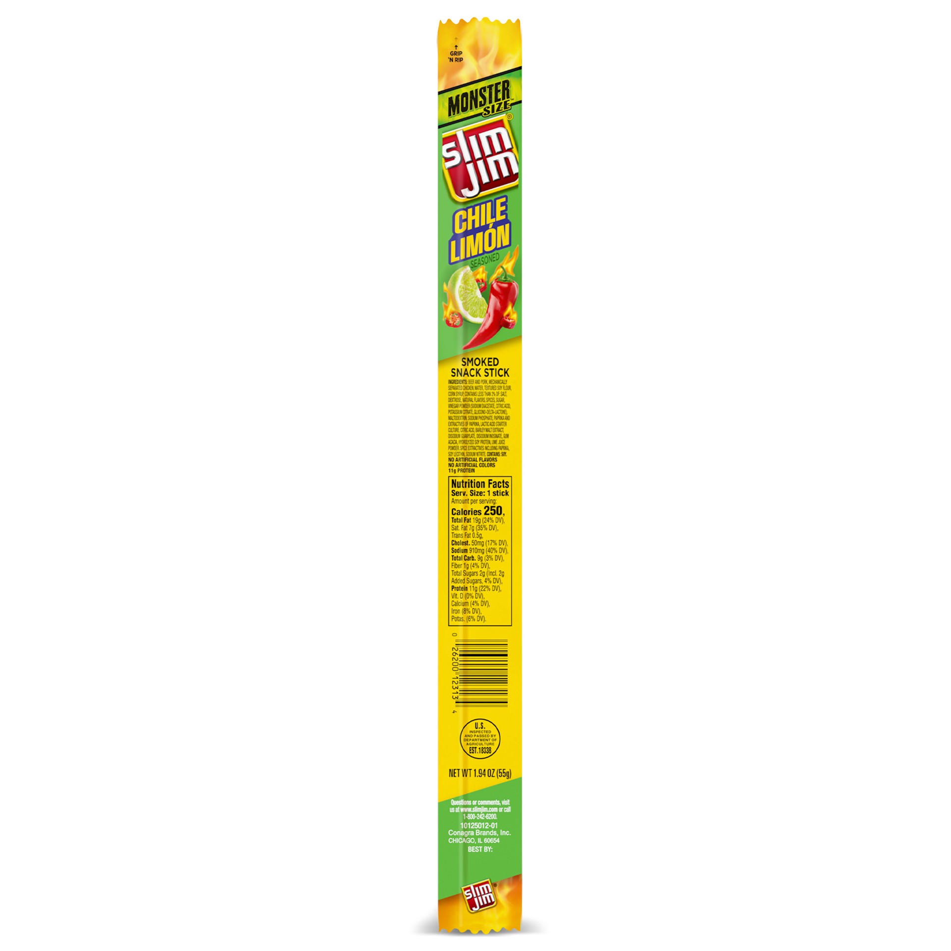 Slim Jim Monster Smoked Snack Stick, Chile Limón Seasoned, On-the-go Meat Snack 1.94 oz.