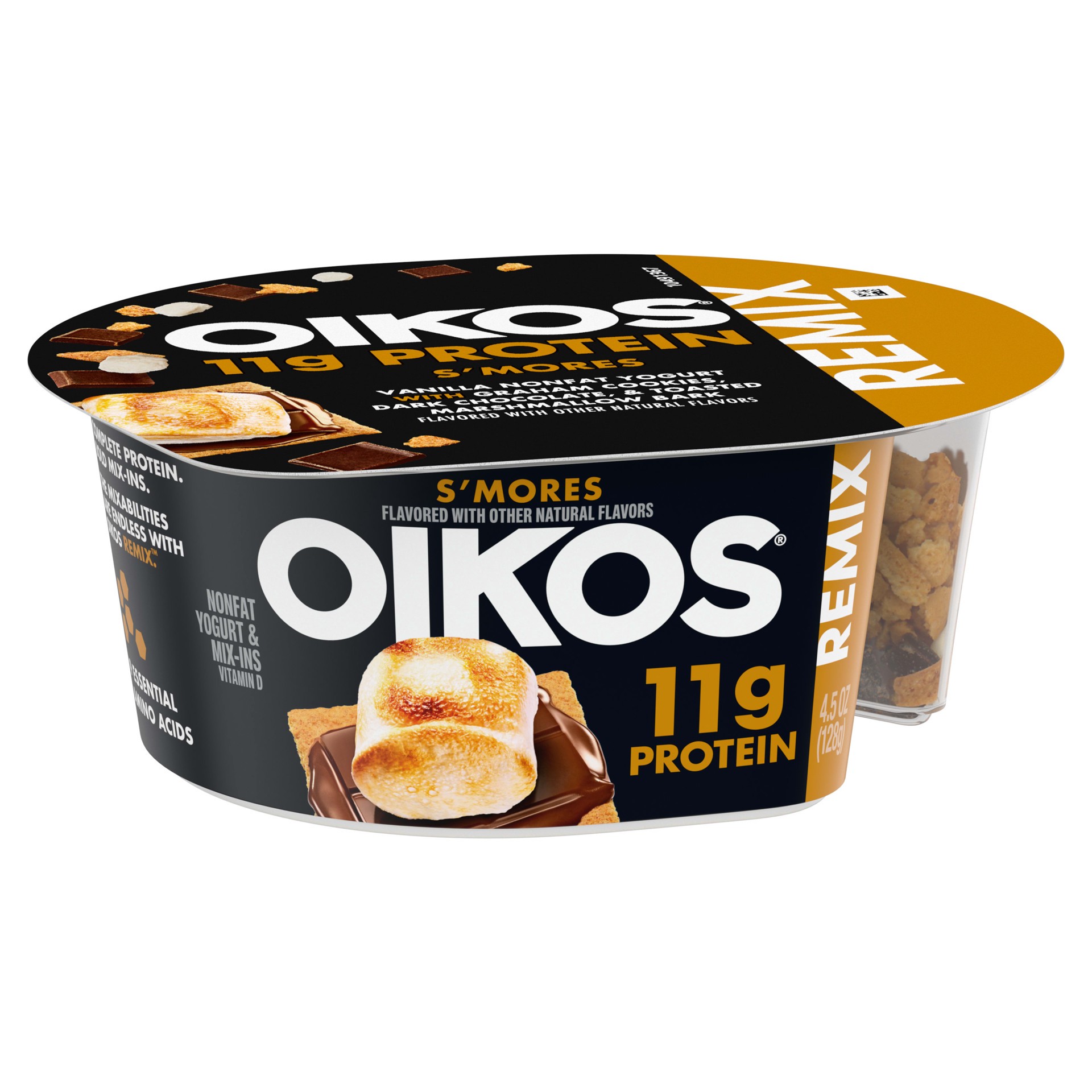 Snack strong with every lift of a spoon with Oikos REMIX S''mores, the delicious nonfat Greek yogurt with complete protein and bold mix-ins to take your snacking routine to the next level. Each Oikos …