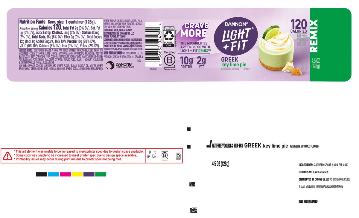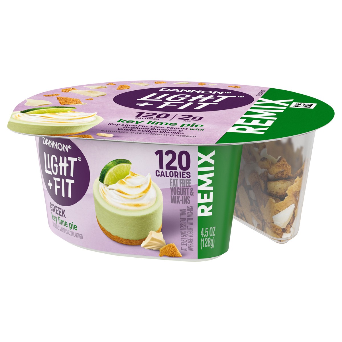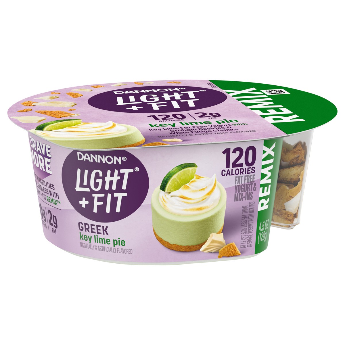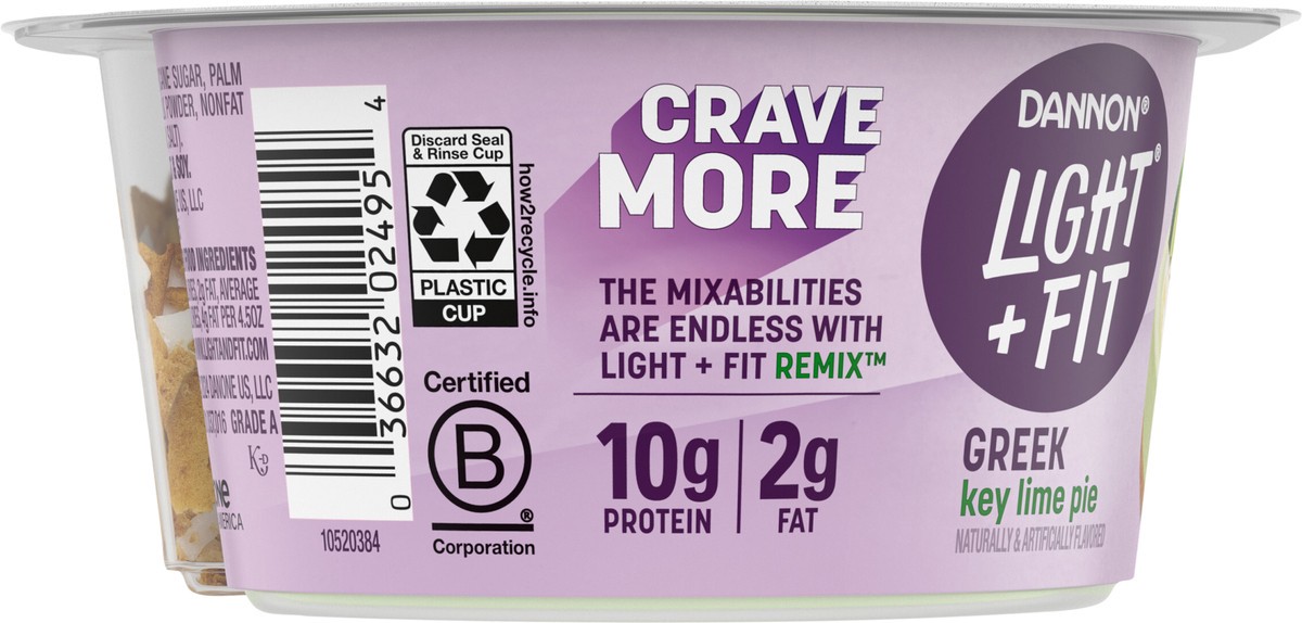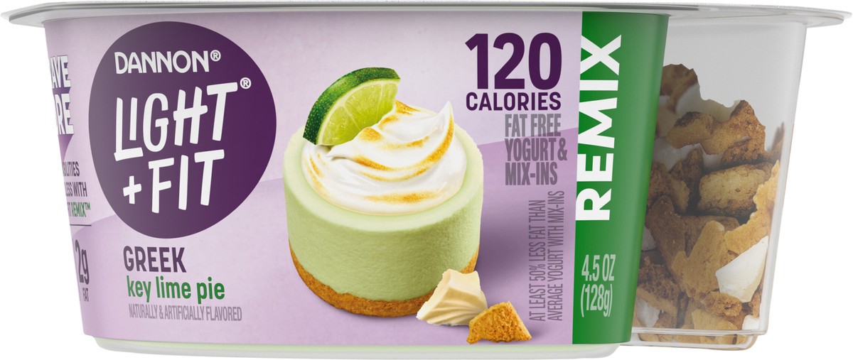 - JUST GRAB YOUR SPOON AND ENJOY: One 4.5 oz cup of Dannon Light + Fit REMIX Key Lime Pie Fat Free Greek Yogurt