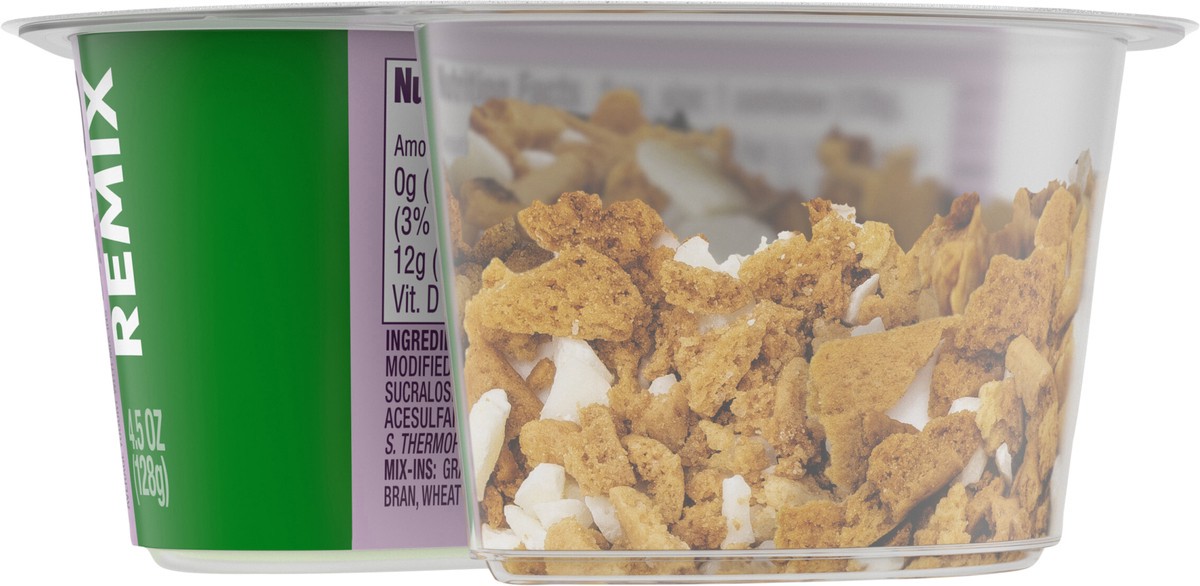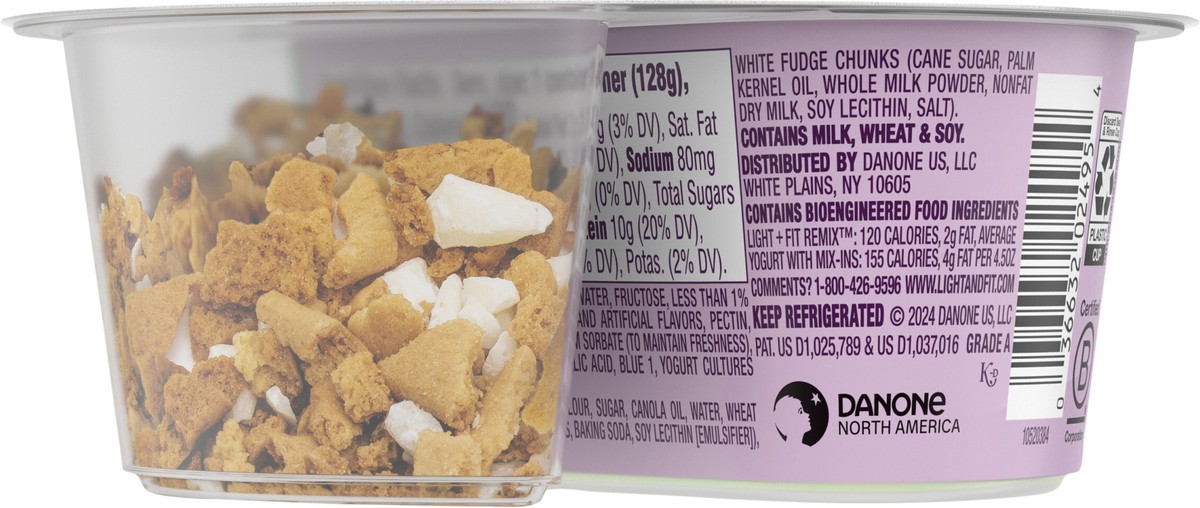 - *50% less fat than average yogurt with mix-ins; Light & Fit Remix: 120 calories, 2g fat; Average yogurt with mix-ins: 155 calories, 4g fat per 4.5oz.