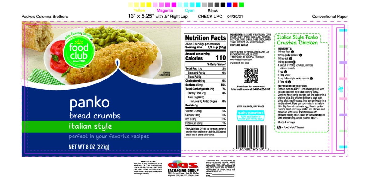 Food Club Italian Style Panko Bread Crumbs 8 oz