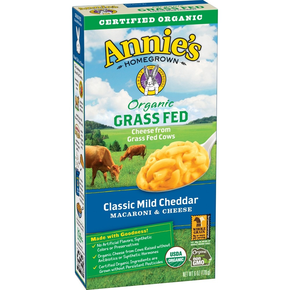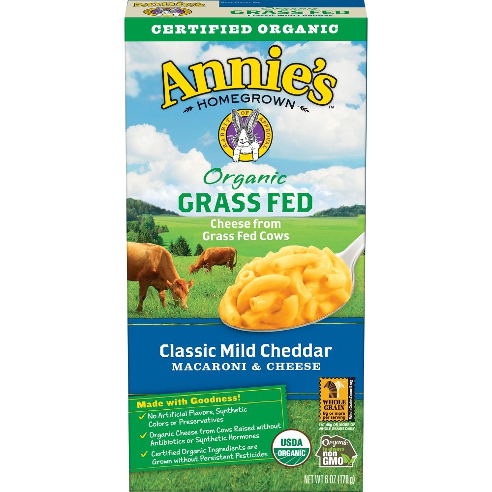 Just when you thought Annie?s Organic Classic Cheddar Mac & Cheese couldn?t get any better, the grass got a little greener. Annie?s Organic Grass Fed Classic Cheddar Mac is made with real cheese from …