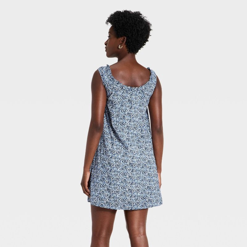Women's Mini Swing Shift Dress - Universal Thread™ Navy Blue Floral S