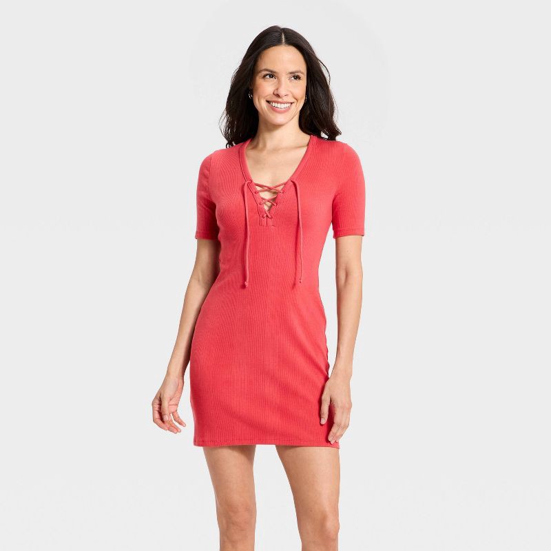Women's Short Sleeve Knit Bodycon Dress - Universal Thread™ Red S