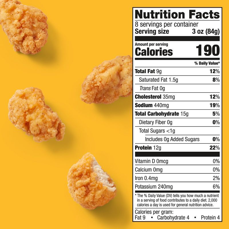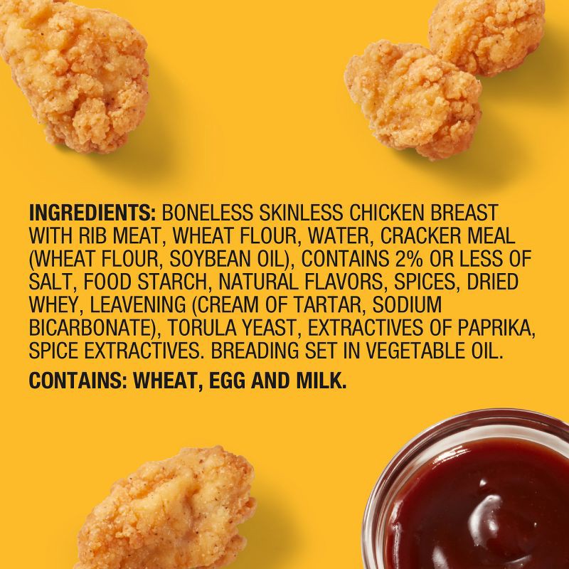Boneless Skinless Chicken Breast with Rib Meat, Wheat Flour, Water, Cracker Meal (Wheat Flour, Soybean Oil), Contains 2% or Less of Salt, Food Starch, Natural Flavors, Spices, Dried Whey, Leavening (C…