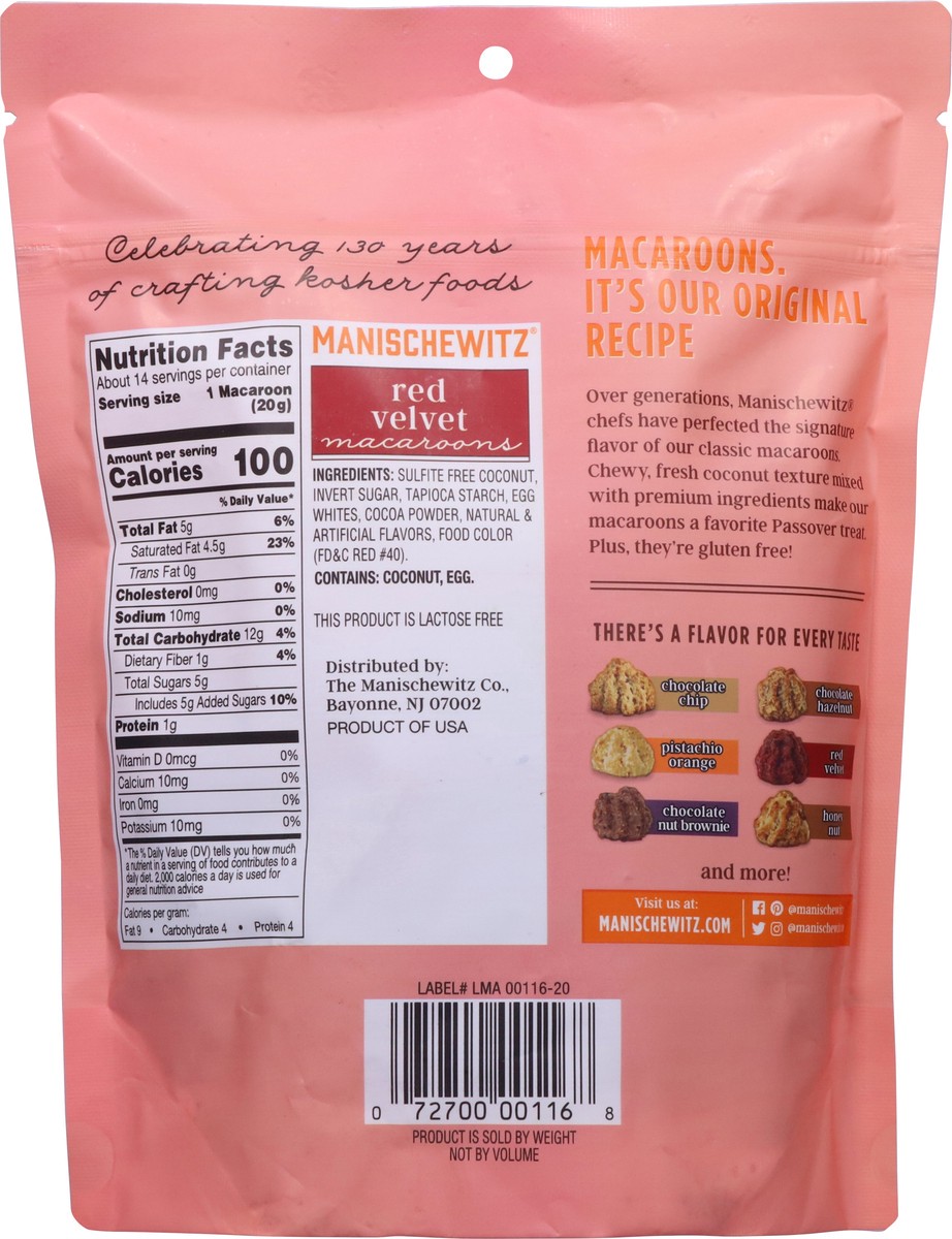 Premium treat. Luscious & decadent red velvet cake flavors combined with coconut. Certified gluten free. gfco.org. This product is lactose free. Comfort food for the soul. Estd 1898. Celebrating over …