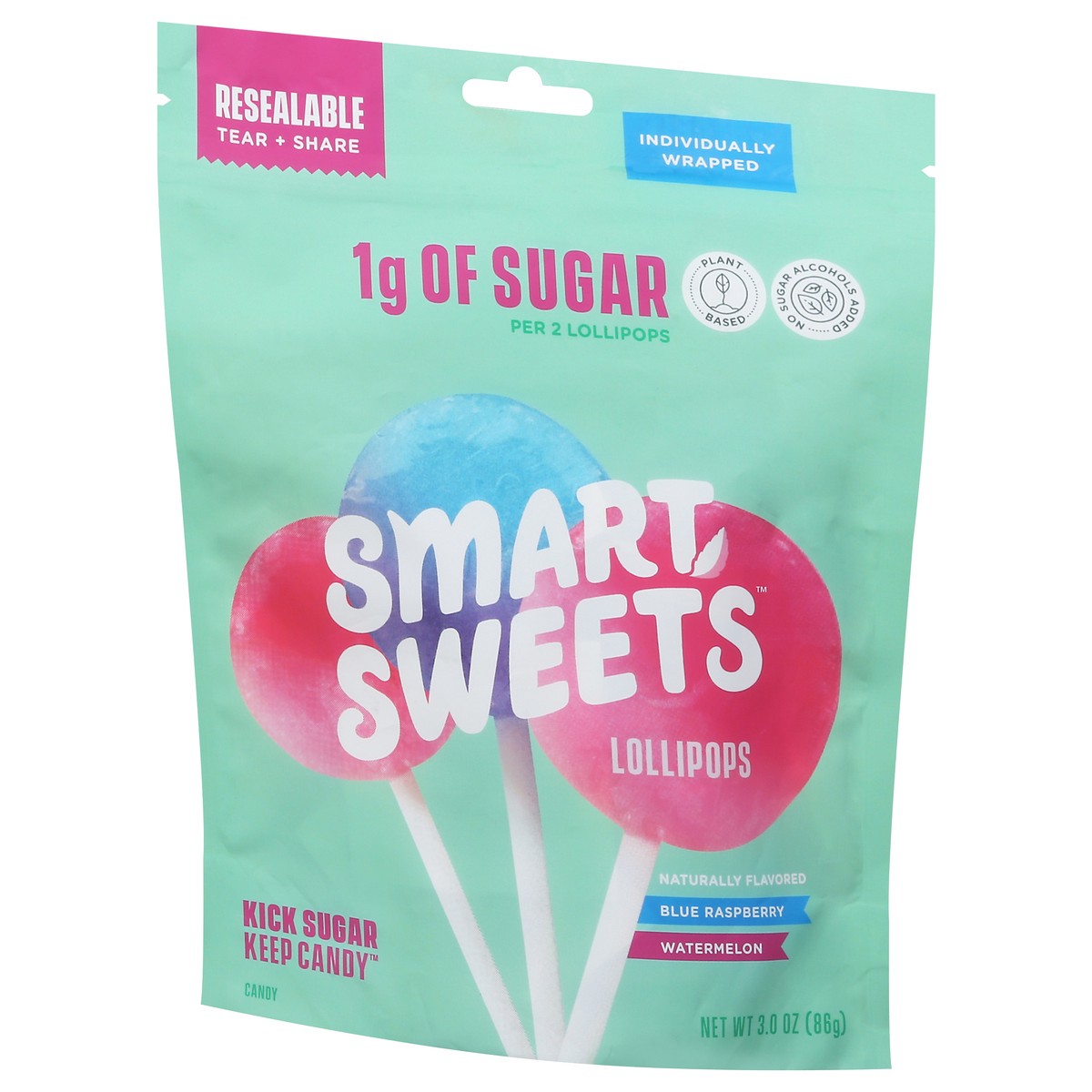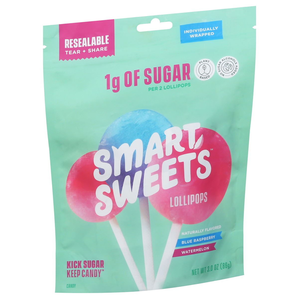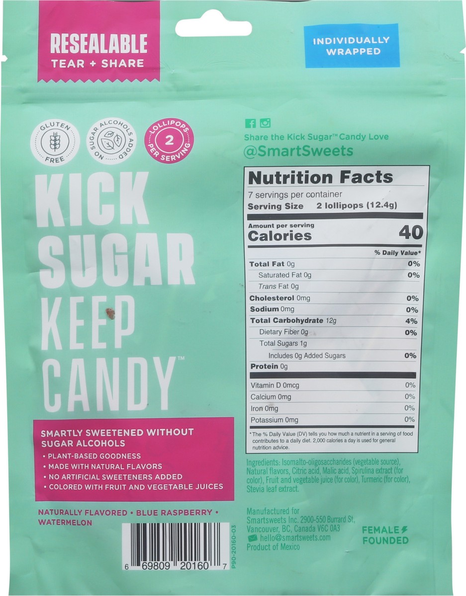 Individually wrapped. Plant based. Kick sugar. Keep candy. 2 lollipops per serving. Smartly sweetened without sugar alcohols. Plant-based goodness. Made with natural flavors. No artificial sweeteners …