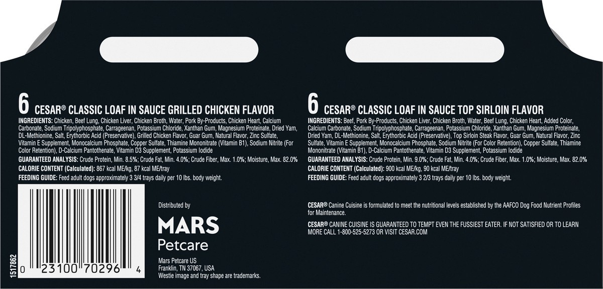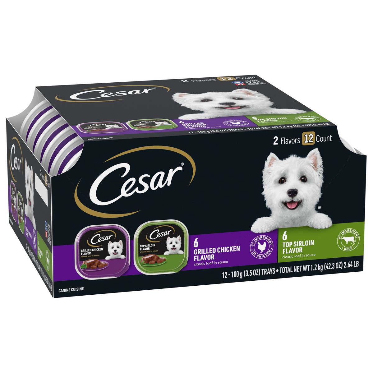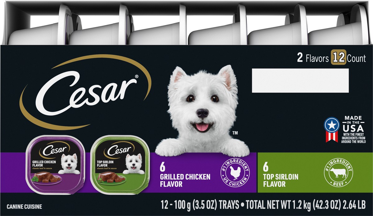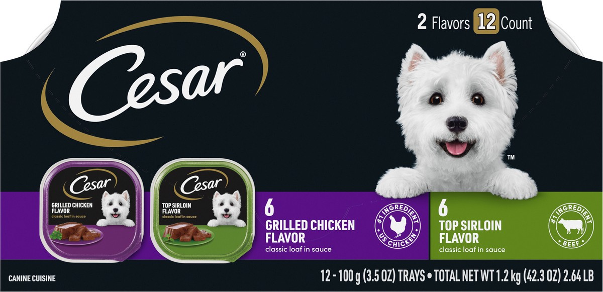 Cesar Grilled Chicken Flavor/Top Sirloin Flavor Canine Cuisine 12 - 3.5 oz ea