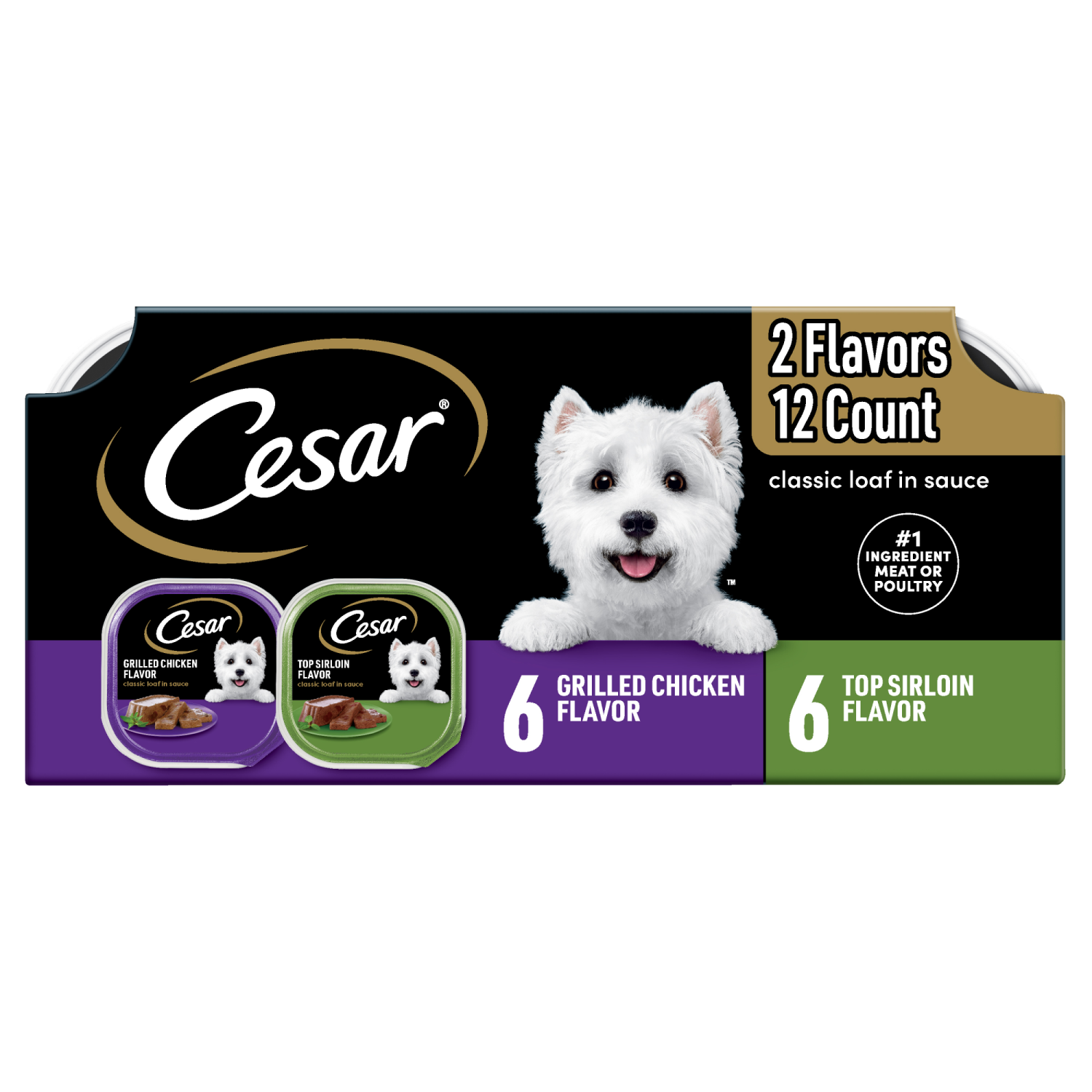 Cesar Grilled Chicken Flavor/Top Sirloin Flavor Canine Cuisine 12 - 3.5 oz ea