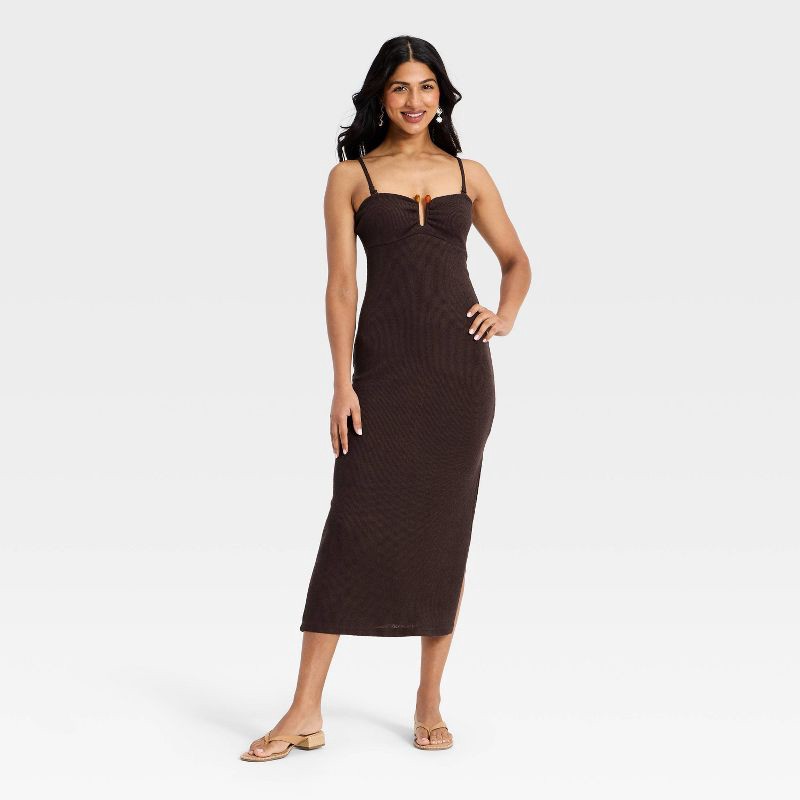 Women's Textured Knit Maxi Dress - A New Day™ Brown L