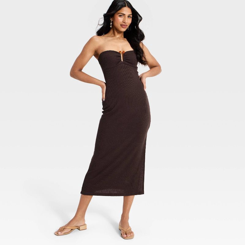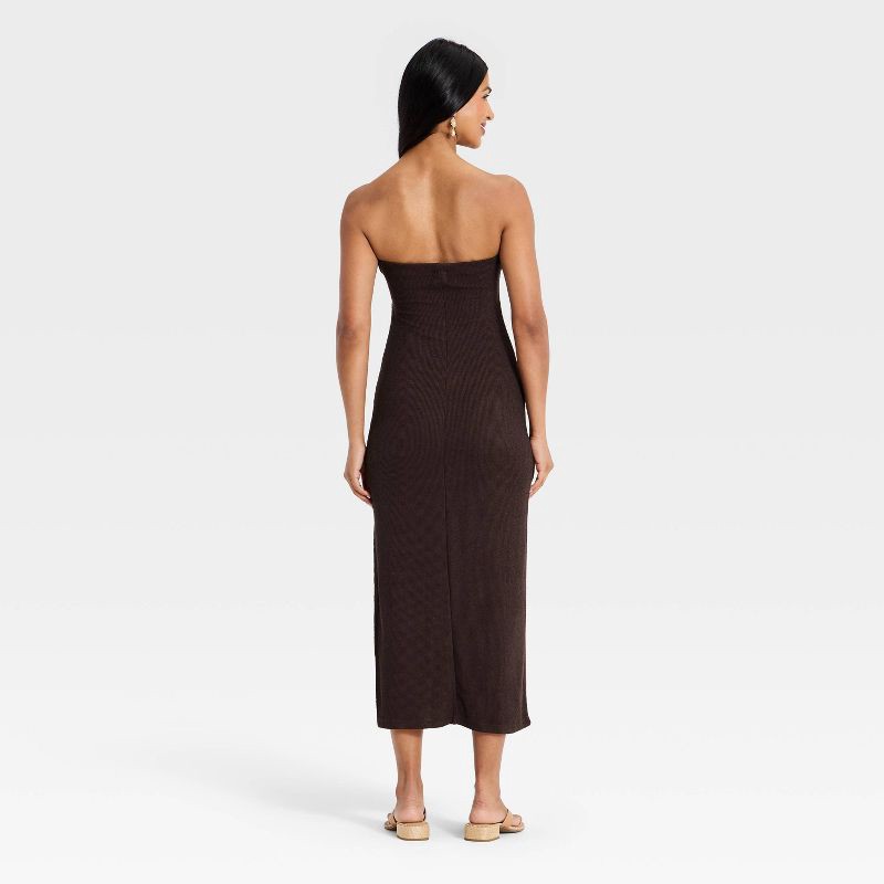 This Textured Knit Maxi Dress from A New Day™ is perfect for cocktails, sunset dinners or seaside strolls. The strapless dress is fashioned in a solid shade with a ribbed texture. It showcases a strai…
