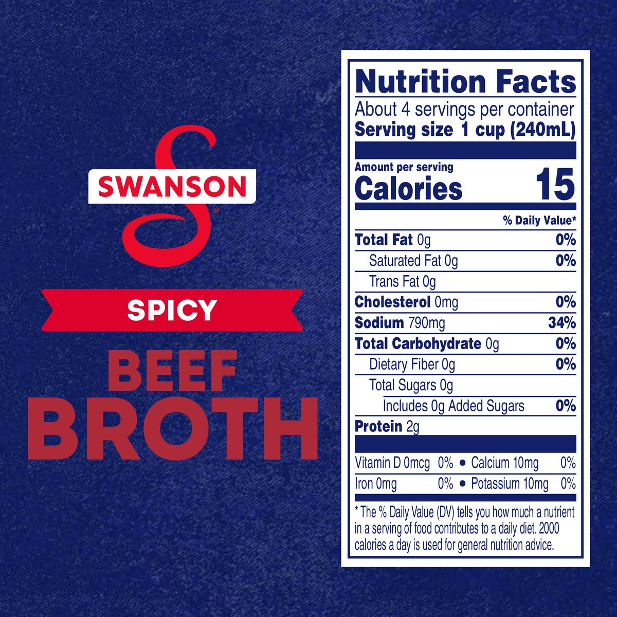 - Swanson Spicy Beef Broth is made with quality ingredients for a rich homemade taste