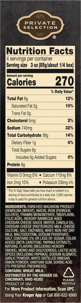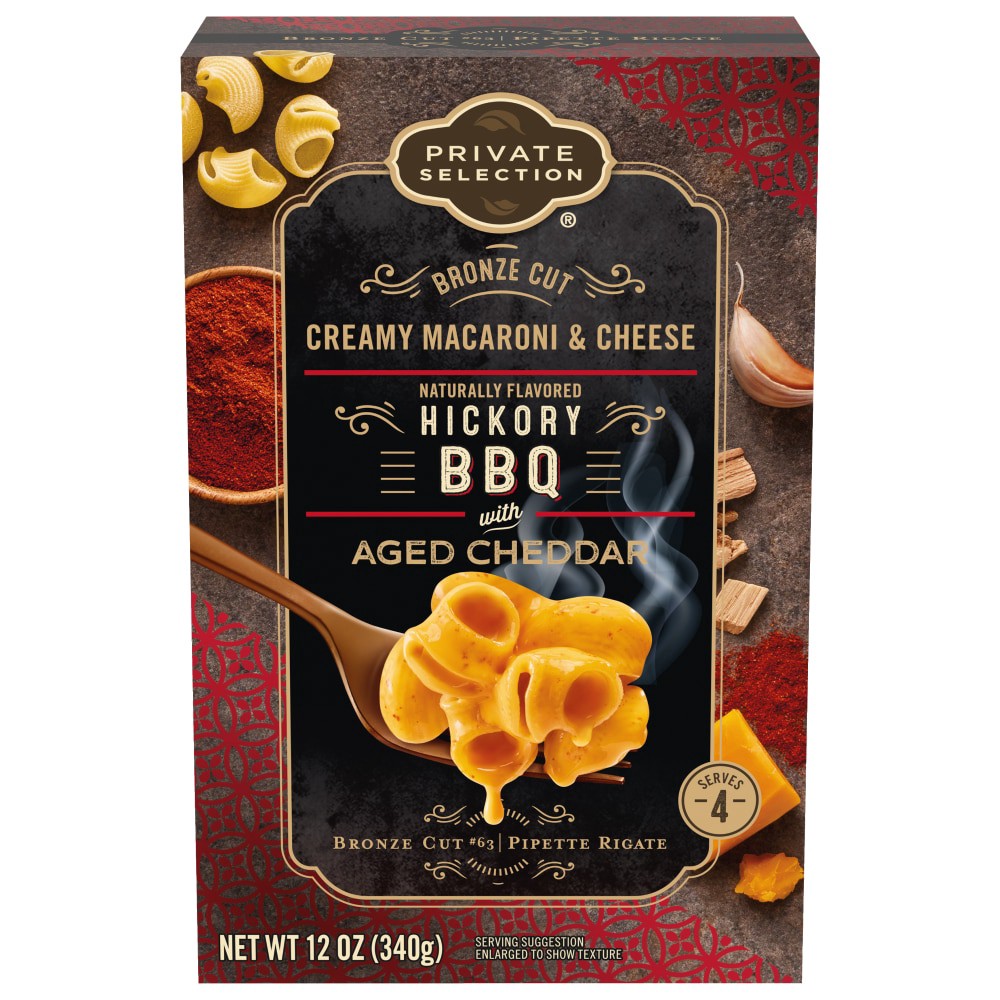 Private Selection® Hickory BBQ Macaroni and Cheese takes comfort food to a discerning level. The creamy blend of aged cheddar and hickory bbq, nestles with gently-cooked, al dente pipette rigate pasta…