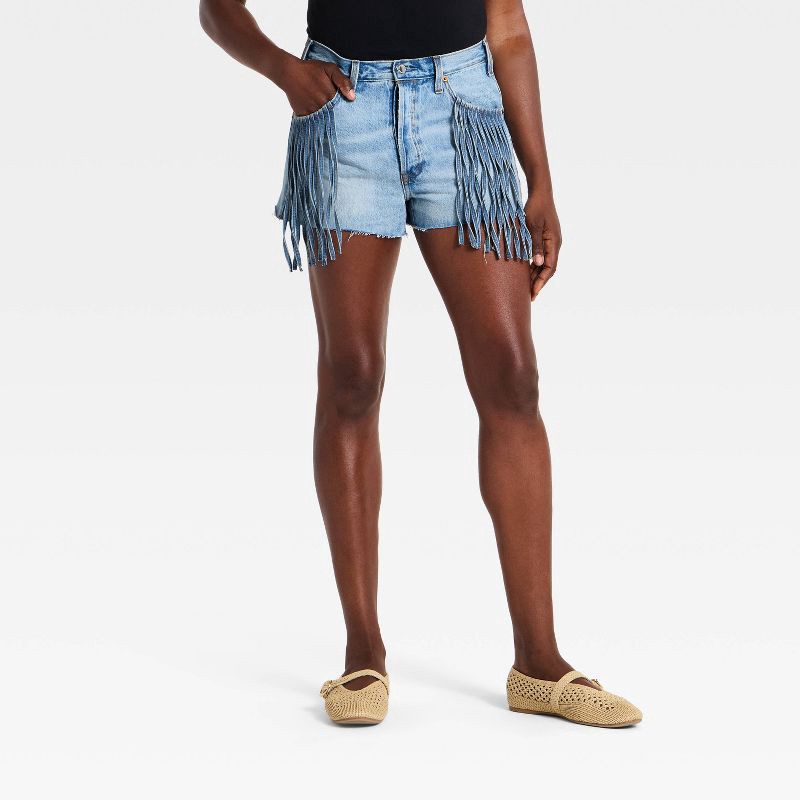 Women's High-Rise Mini Cut-Off Fringe Denim Shorts - Universal Thread™ Light Wash 16