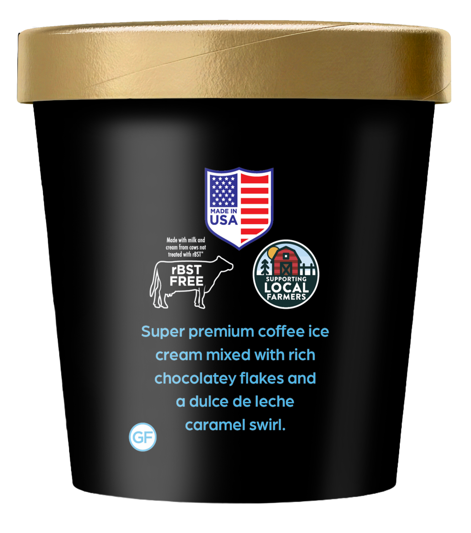 Enjoy some coffee ice cream with a caramel swirl. Skip the barista with the grande taste of extra creamy coffee ice cream, dulce de leche caramel swirls and dark chocolate flakes.