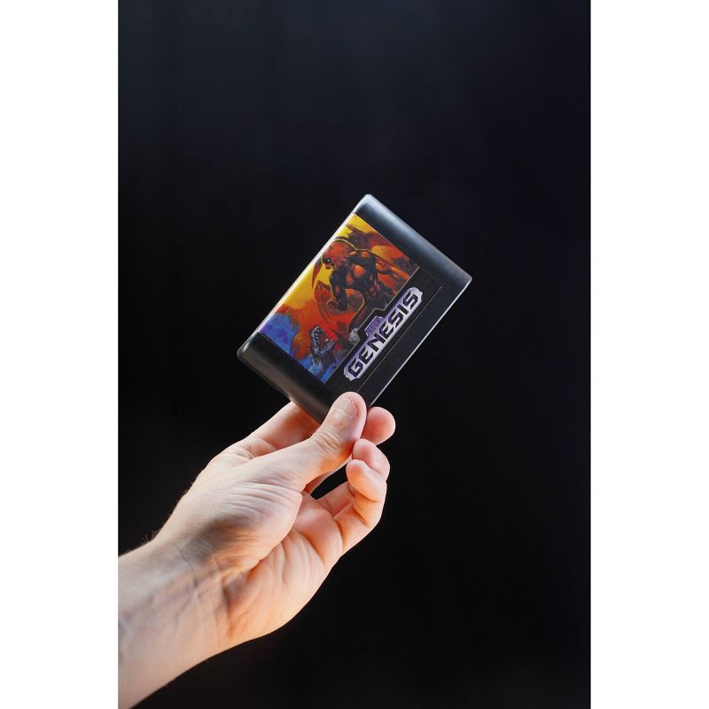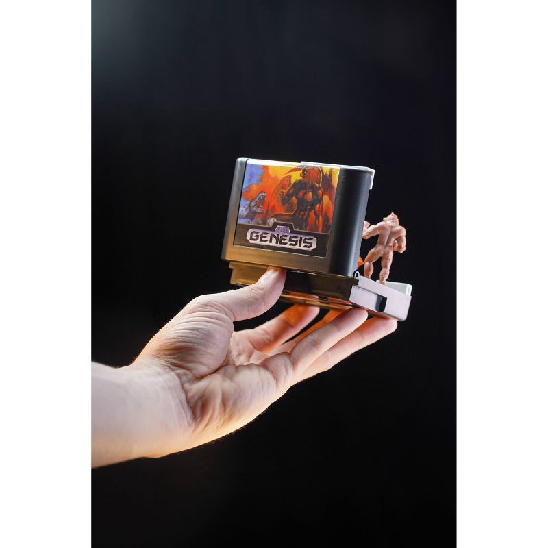 - Cartridge is sized to match the original Sega Genesis game cartridge, folding shut for compact display (figures do not store inside).