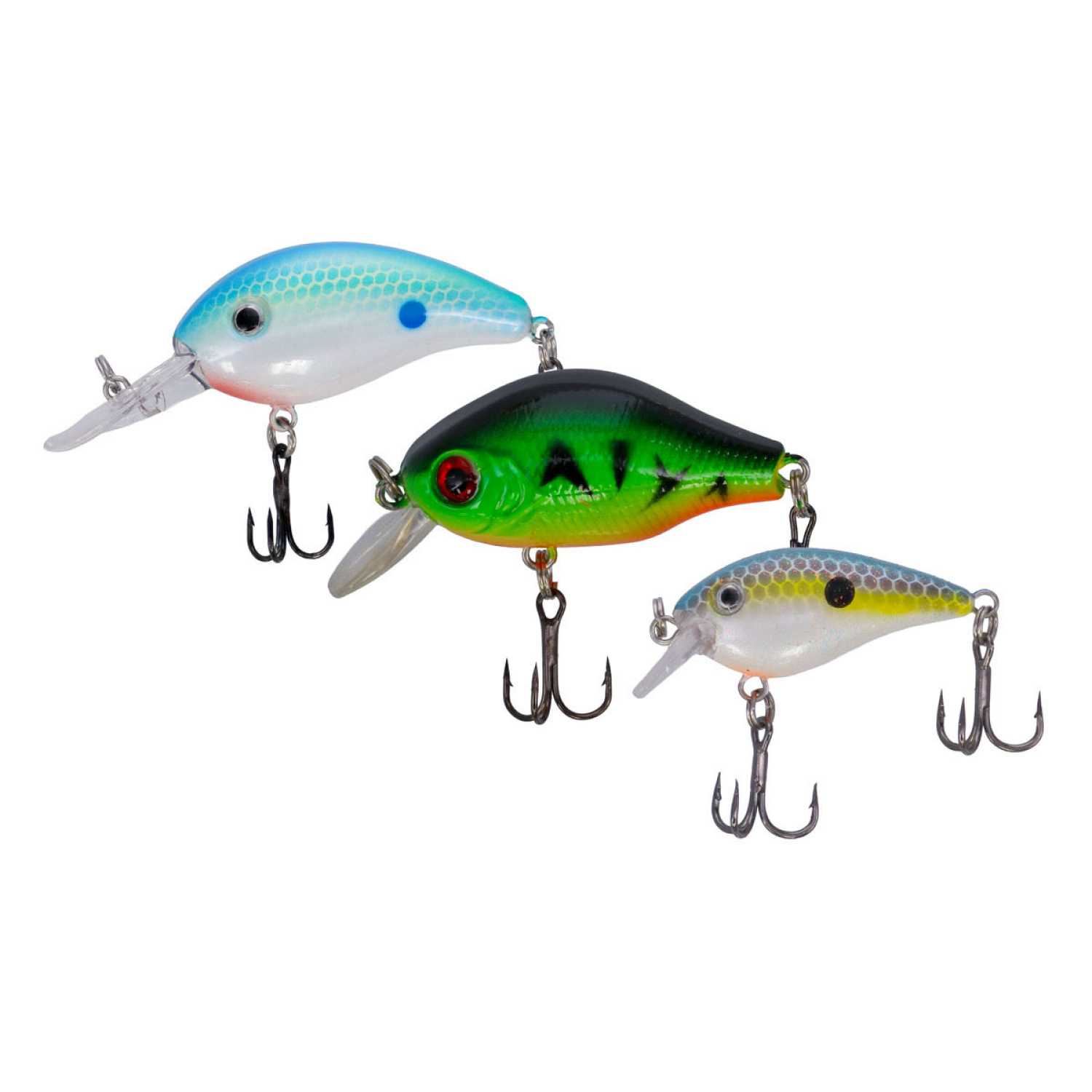 THREE ASSORTED SHORT BILL CRANK BAITS IN MICRO SIZES FOR CRAPPIE, BASS, BLUEGILL, TROUT AND WALLEYE