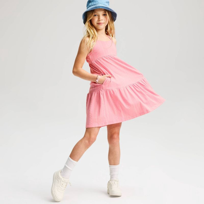 Add easy-breezy style to your child's wardrobe with this Dress from Cat & Jack™. Made from lightweight cotton-recycled polyester blend jersey fabric, this pullover dress features a rounded square neck…