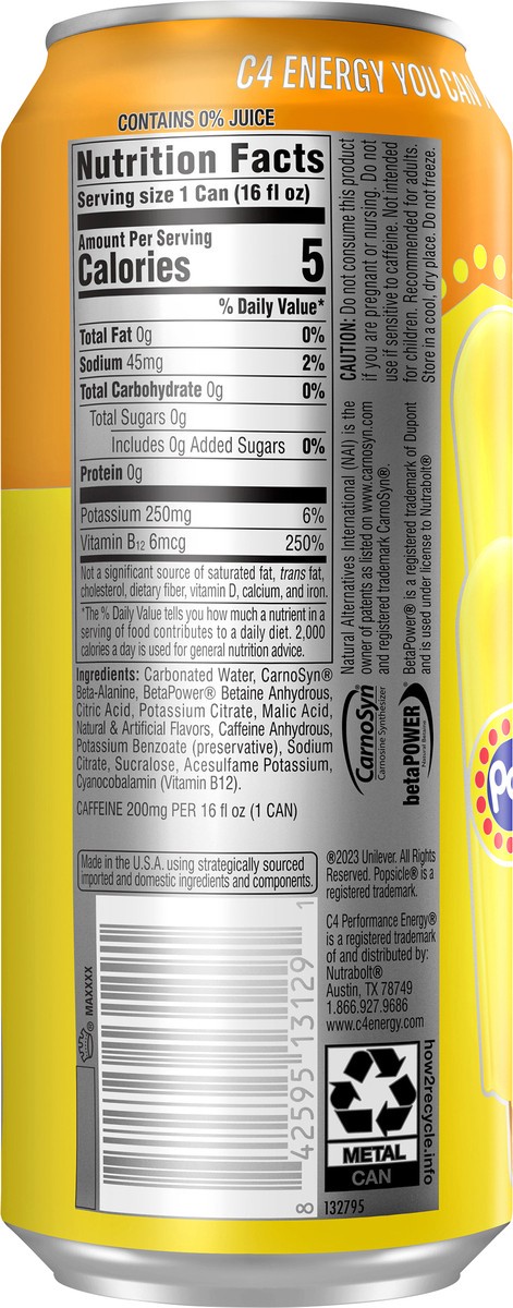 C4 Sport Sport Performance Hawaiian Pineapple Popsicle Energy Drink, 16 fl oz Can
