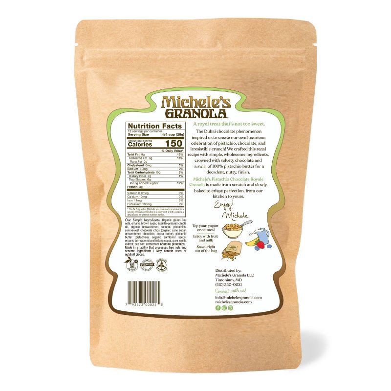 Inspired by the global Dubai chocolate phenomenon, Michele's Pistachio Chocolate Royale Granola is a luxurious celebration of pistachio, chocolate, and irresistible crunch baked into crispy clusters. …
