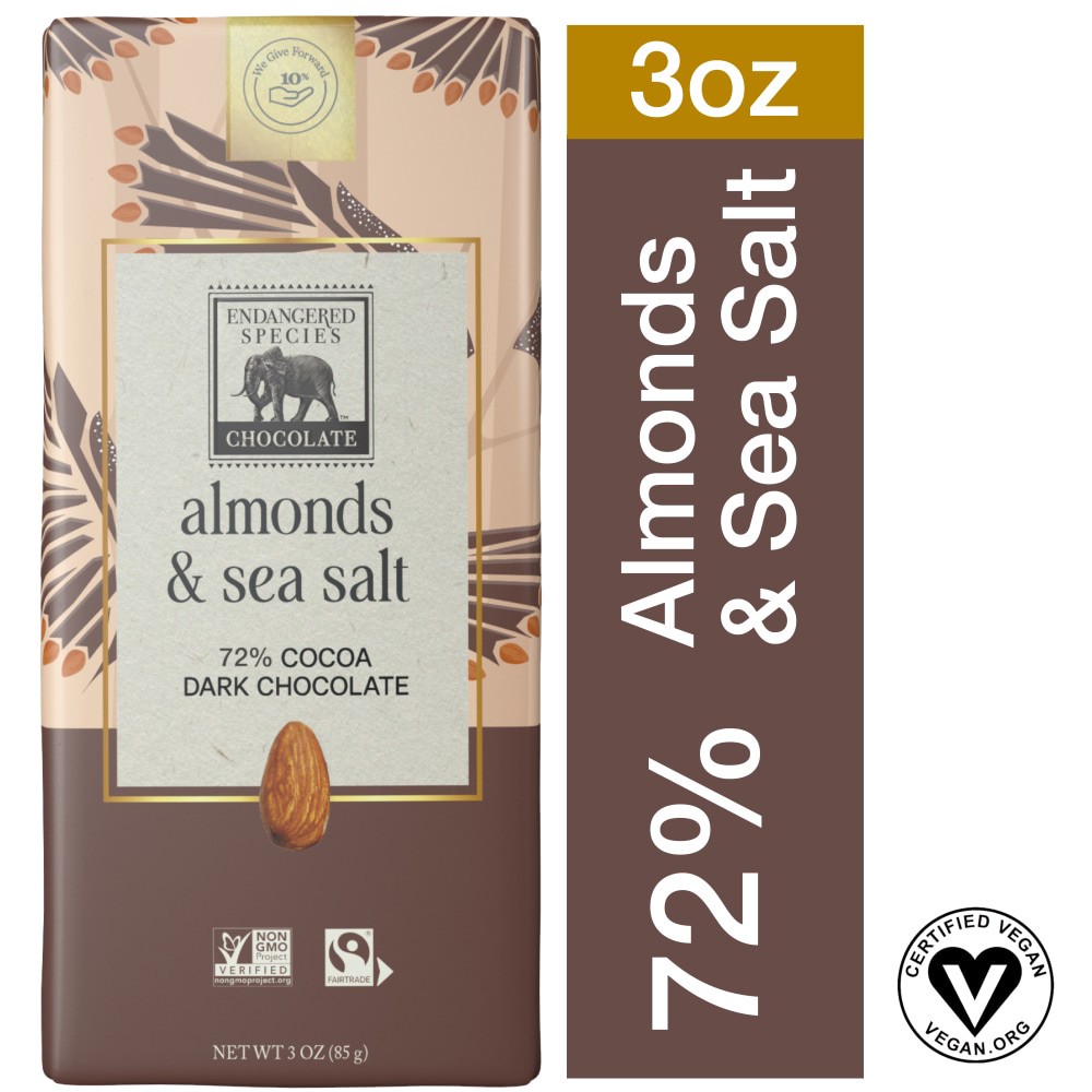 Endangered Species 72% Dark Chocolate with Sea Salt and Almonds - 3 oz