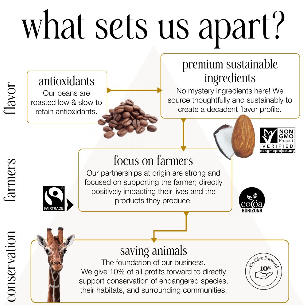 Look inside to learn how we're doing good better. Certified Fair Trade by FLOCert. Fairtrade cocoa, vanilla, and cane sugar: mass balance is used to match fairtrade sourcing, total 91.7%. Visit info.f…