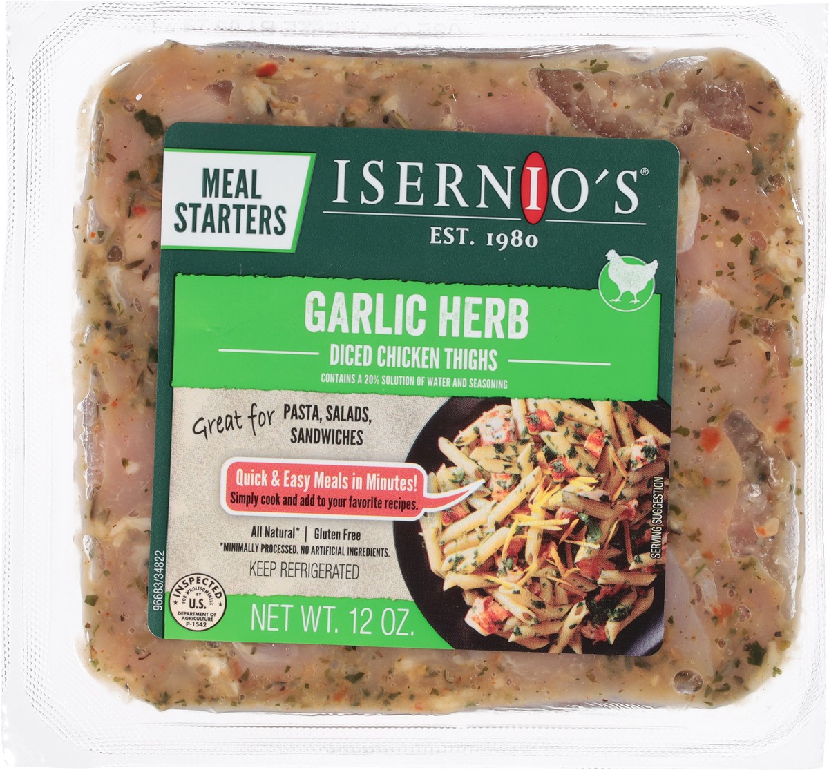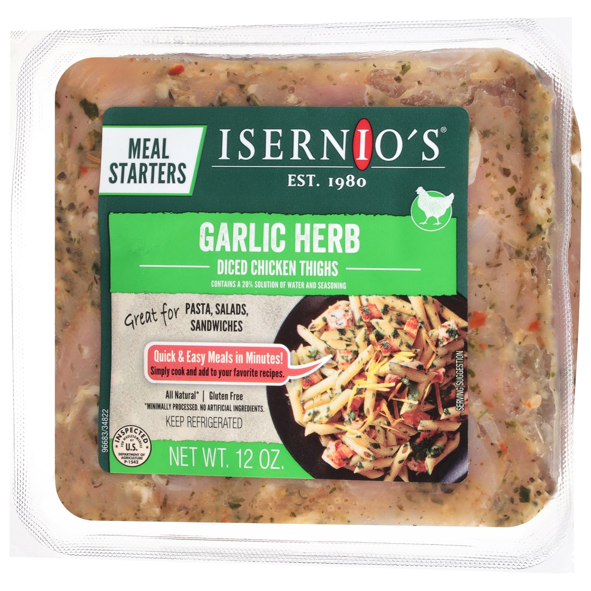 Isernio's Diced Garlic Herb Chicken Thighs 12 oz