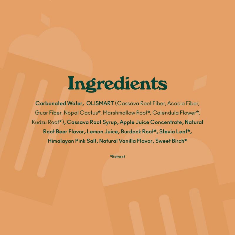 Carbonated Water, Olismart (Cassava Root Fiber, Acacia Fiber, Guar Fiber, Nopal Cactus*, Marshmallow Root*, Calendula Flower*, Kudzu Root*), Cassava Root Syrup, Apple Juice Concentrate, Natural Flavor…