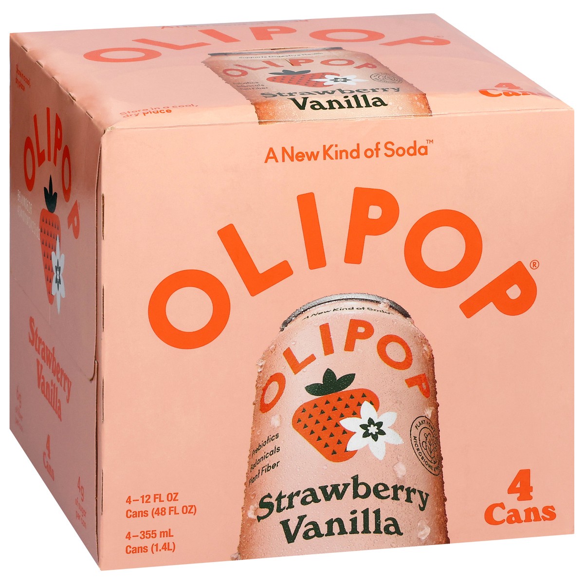 Olipop Strawberry Vanilla Prebiotic Soda - 4ct/12 fl oz Cans