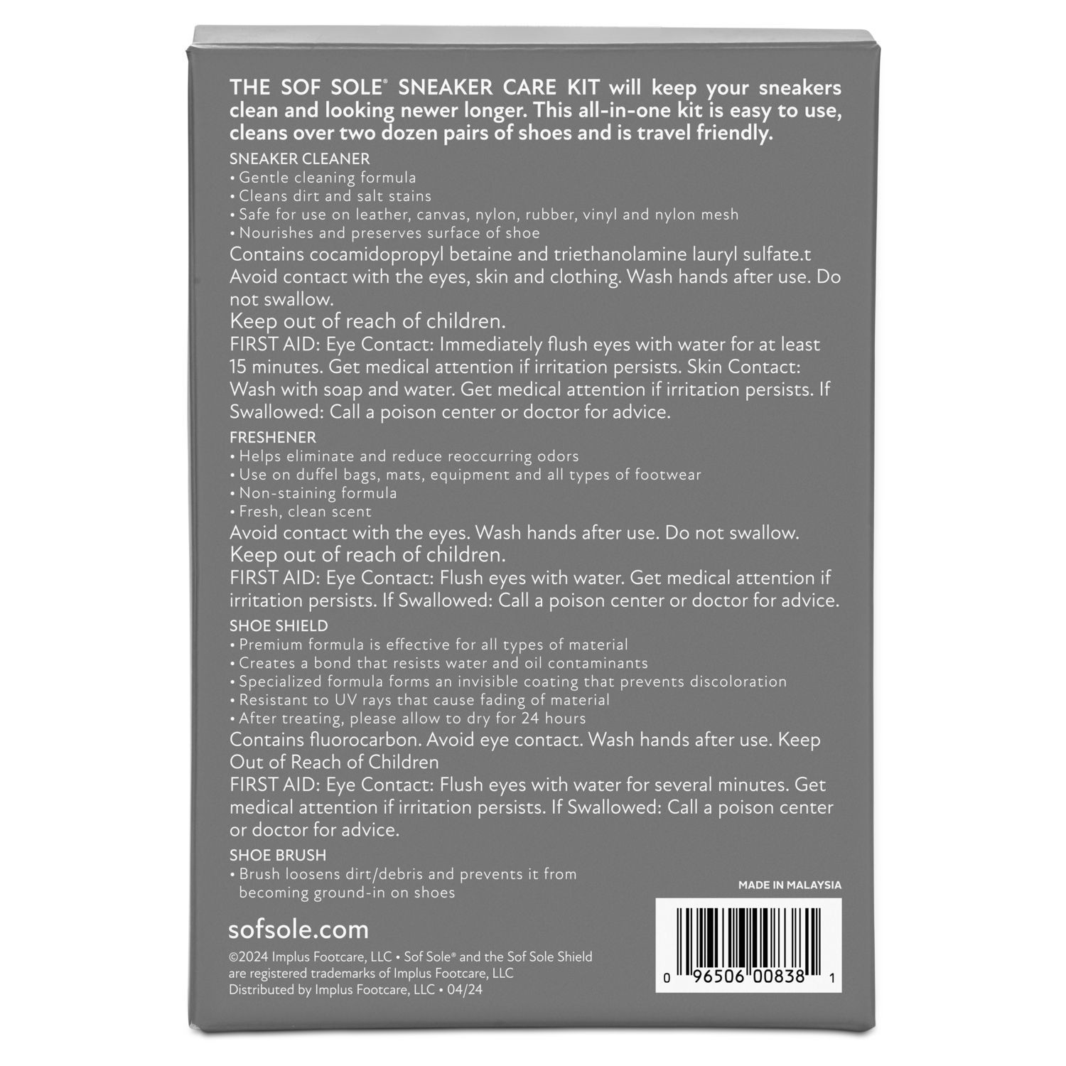 The Sof Sole Sneaker Care Kit includes everything you need to keep your shoes looking newer longer. Each kit includes a cleanser to gently clean shoes, a soft brush to condition the exterior, a freshe…