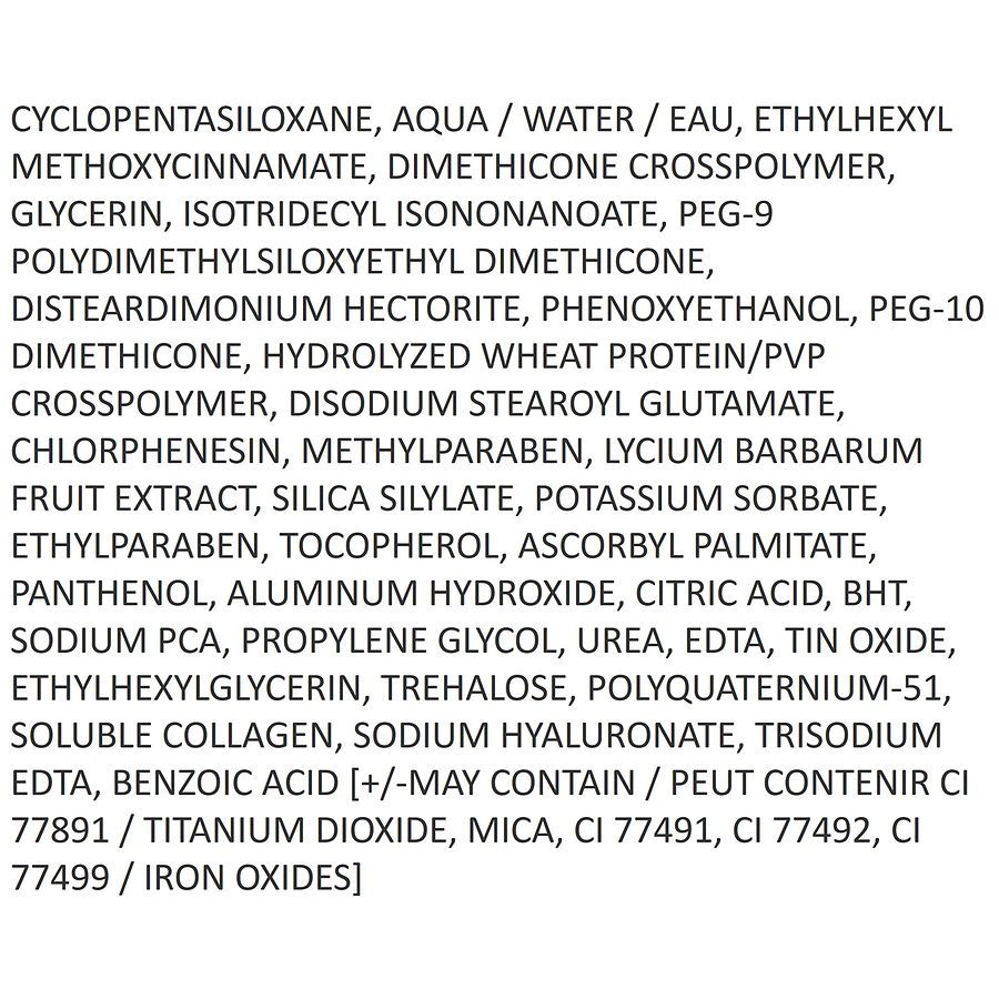 Inactive Ingredients: Cyclopentasiloxane, Water, Dimethicone Crosspolymer, Glycerin, Isotridecyl Isononanoate, PEG-9 Polydimethylsiloxyethyl Dimethicone, Disteardimonium Hectorite, Phenoxyethanol, PEG…
