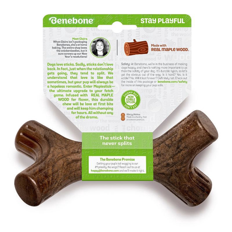 Under 60 lbs. Return the flavor. With real maple wood. The stick that never splits. Meet Claire. When Claire isn't packaging Benebones, she's at home baking. The entire shop loves the snickerdoodles, …