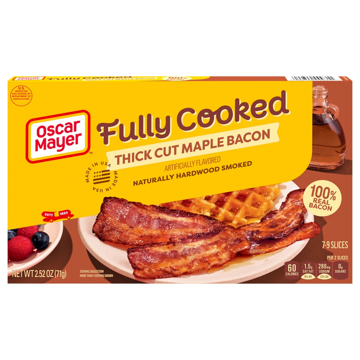 Oscar Mayer Maple Fully Cooked Thick Cut Bacon, 2.52 oz Box, 7-9 slices