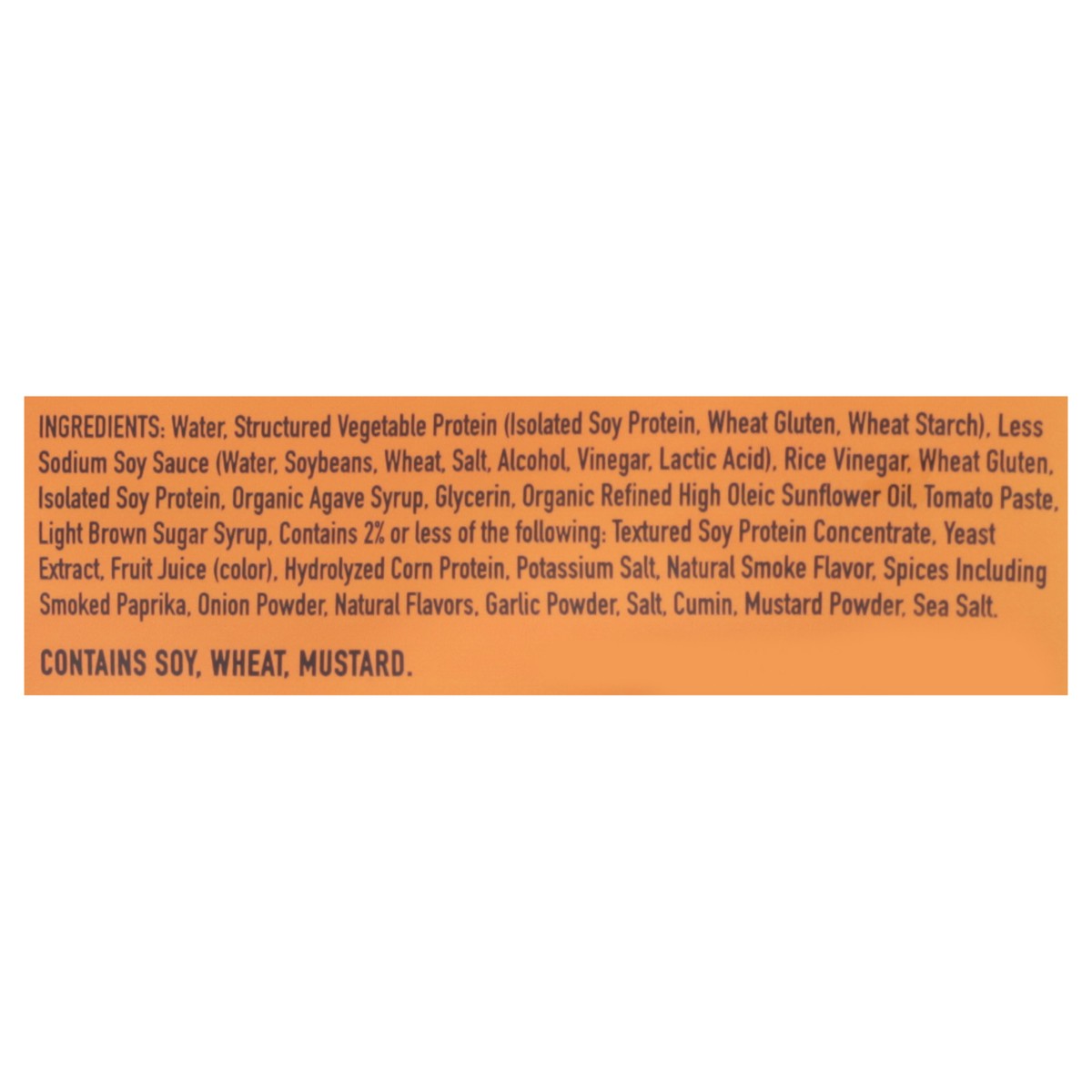 Water, Structured Vegetable Protein (Isolated Soy Protein, Wheat Gluten, Wheat Starch), Less Sodium Soy Sauce (Water, Soybeans, Wheat, Salt, Alcohol, Vinegar, Lactic Acid), Rice Vinegar, Wheat Gluten,…