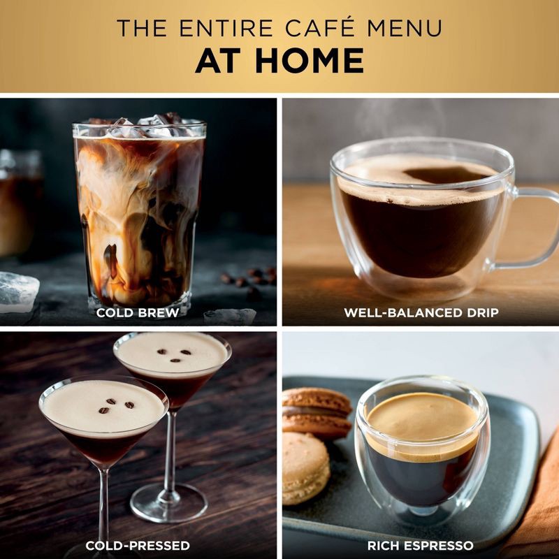 - 3 MACHINES IN 1: Brew without limits with no guesswork espresso, well-balanced drip coffee, and rapid cold brew. 2 Espresso Styles — double shot or quad shot, 3 Drip Coffee Styles—classic, rich or over ice, and 2 Cold Brew styles— cold pressed espresso or cold brew coffee (drip coffee and cold brew available in 6, 8, 10, 12, 14, 16, 18 oz. sizes).