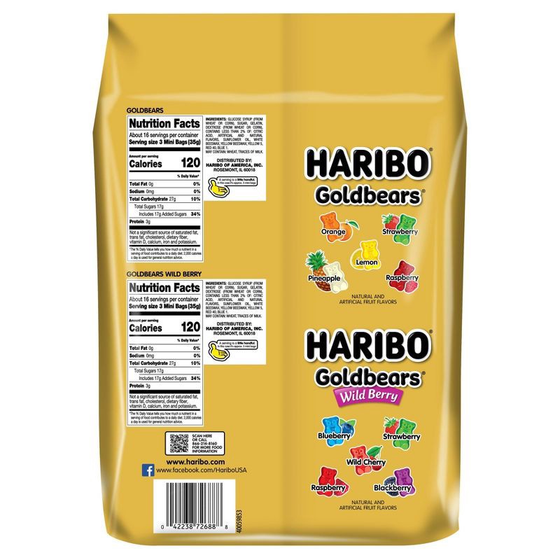 - This HARIBO Goldbears package contains 100 treat size bags of HARIBO Goldbears and HARIBO Goldbears Wild Berry