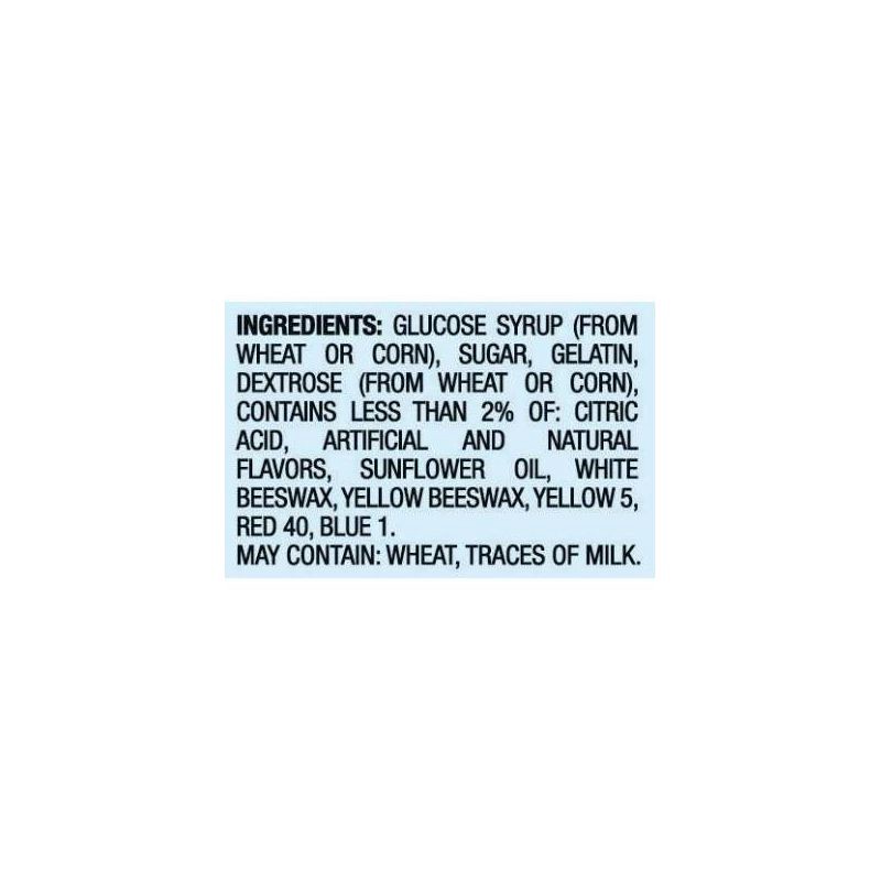 GOLDBEARS WILD BERRY - GLUCOSE SYRUP (FROM WHEAT OR CORN), SUGAR, GELATIN, DEXTROSE (FROM WHEAT OR CORN), CONTAINS LESS THAN 2% OF: CITRIC ACID, ARTIFICIAL AND NATURAL FLAVORS, SUNFLOWER OIL, WHITE BE…