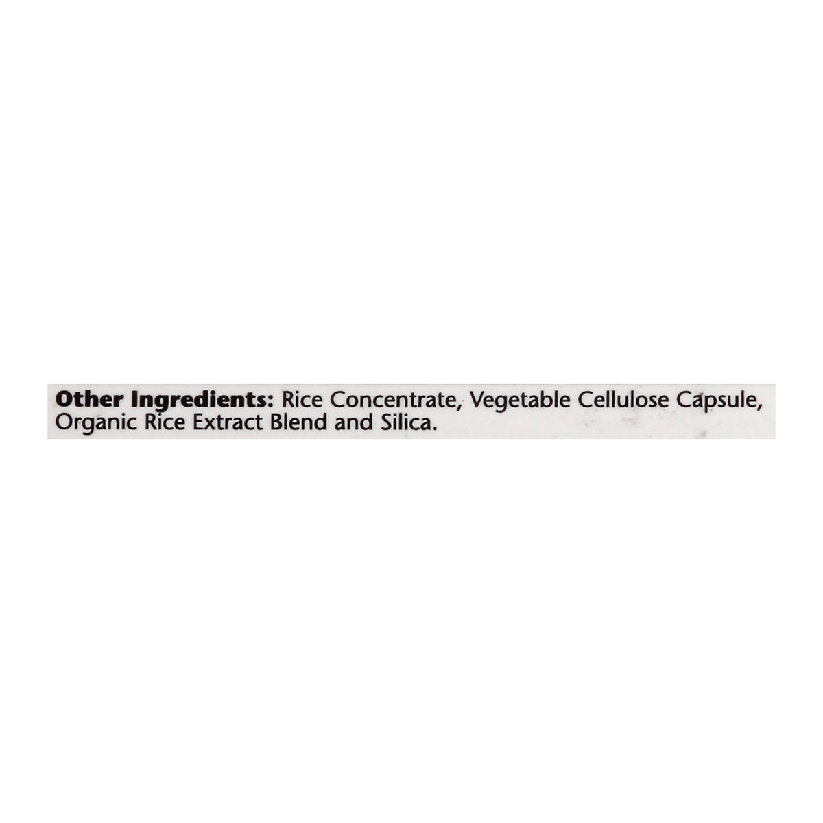 Other Ingredients: Rice Concentrate, Vegetable Cellulose Capsule, Organic Rice Extract Blend and Silica.