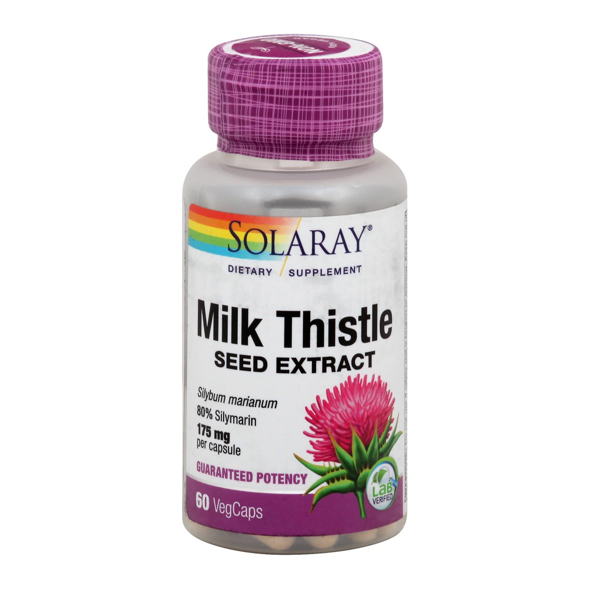 Dietary Supplement. Silybum marianum. 80% silymarin. 100% vegan. Non-GMO. 175 mg per capsule. Guaranteed potency. Lab verified. Discussion: Native of the Mediterranean region, milk thistle has been us…
