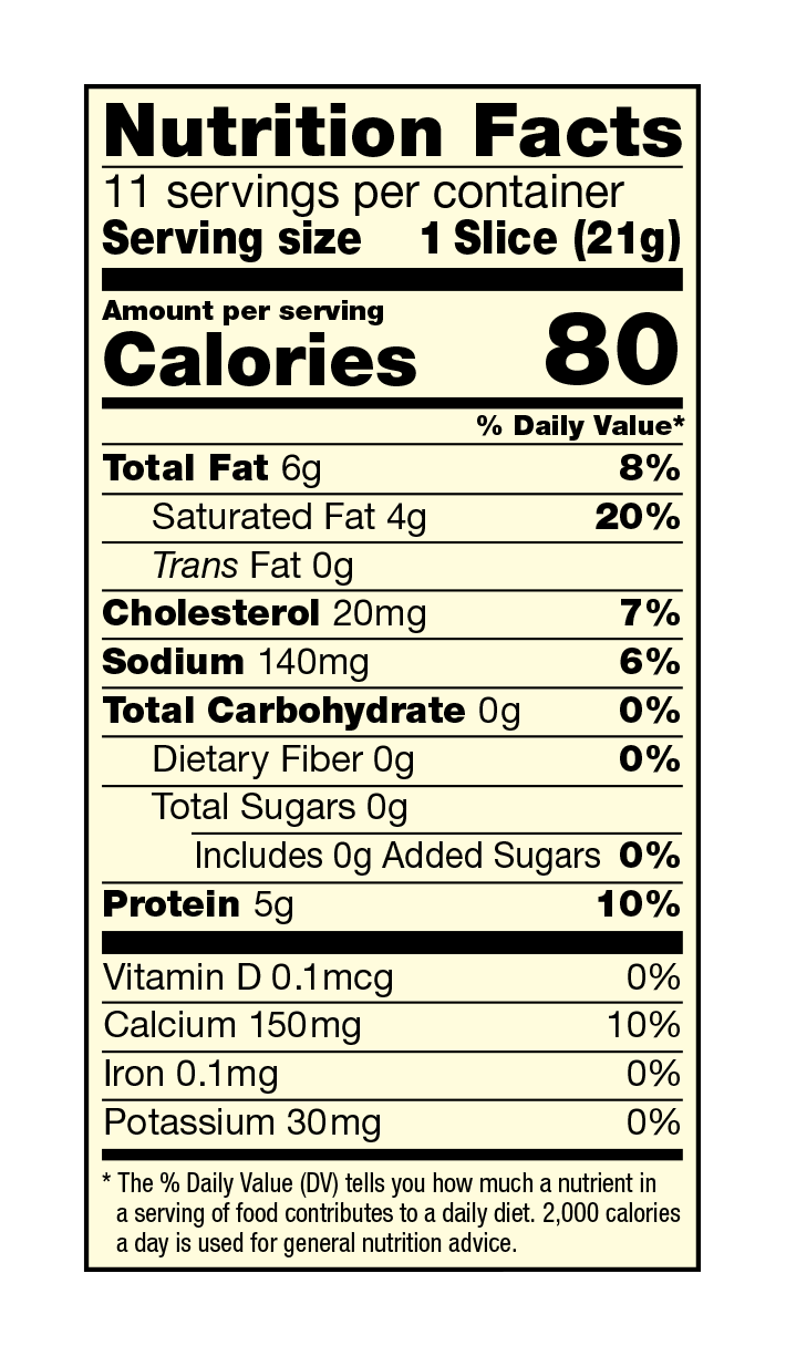 Pasteurized Milk, Cheese Culture, Salt, Enzymes, Annatto (Vegetable Color).