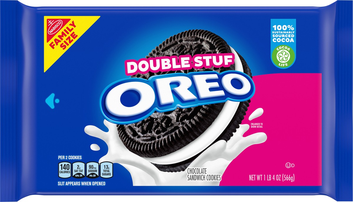 - One 20 oz family size pack of OREO Double Stuf Chocolate Sandwich Cookies (packaging may vary)