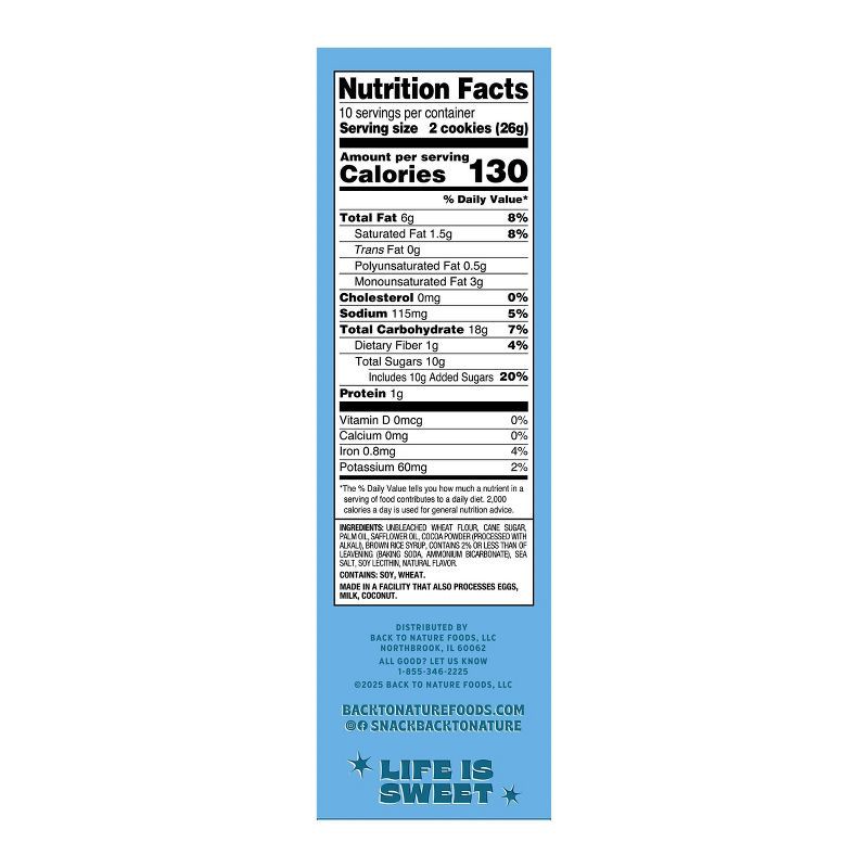 Unbleached Wheat Flour, Cane Sugar, Palm Oil, Safflower Oil, Cocoa Powder (Processed with Alkali), Brown Rice Syrup, Contains 2% or Less than of Leavening (Baking Soda, Ammonium Bicarbonate), Sea Salt…