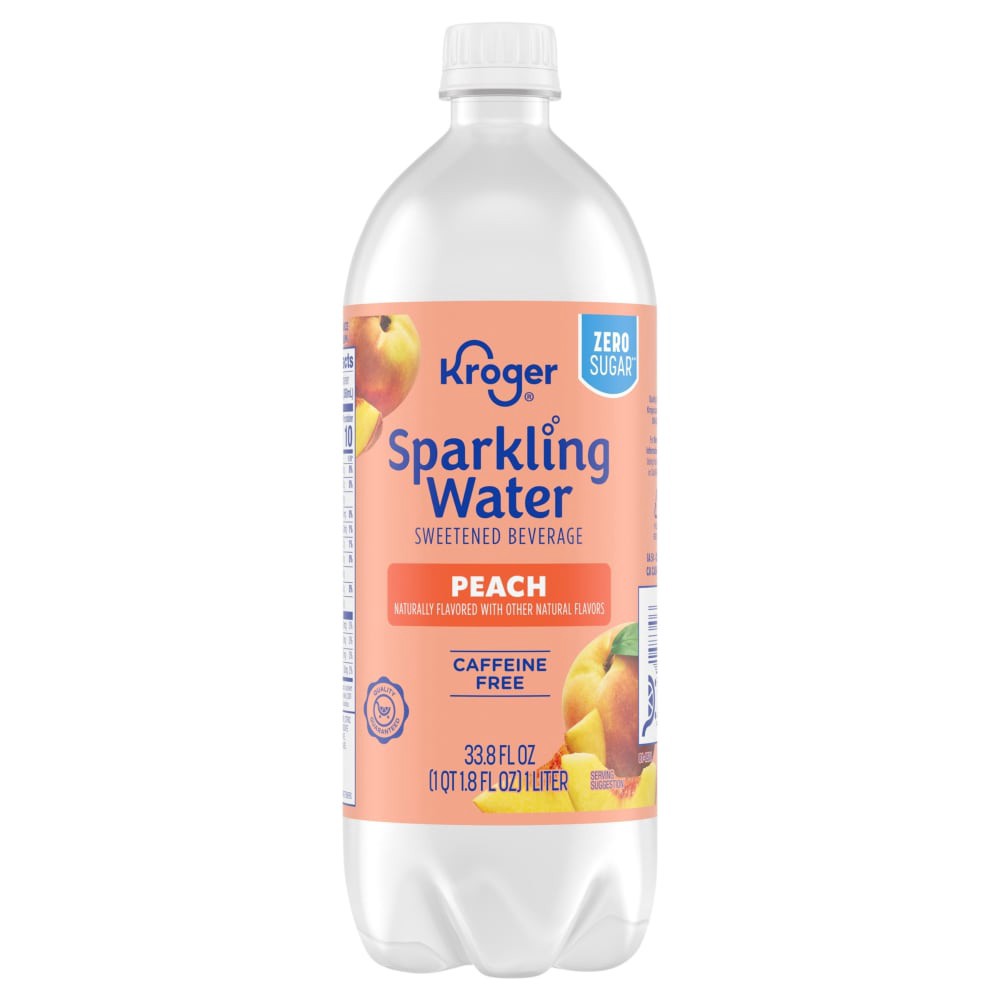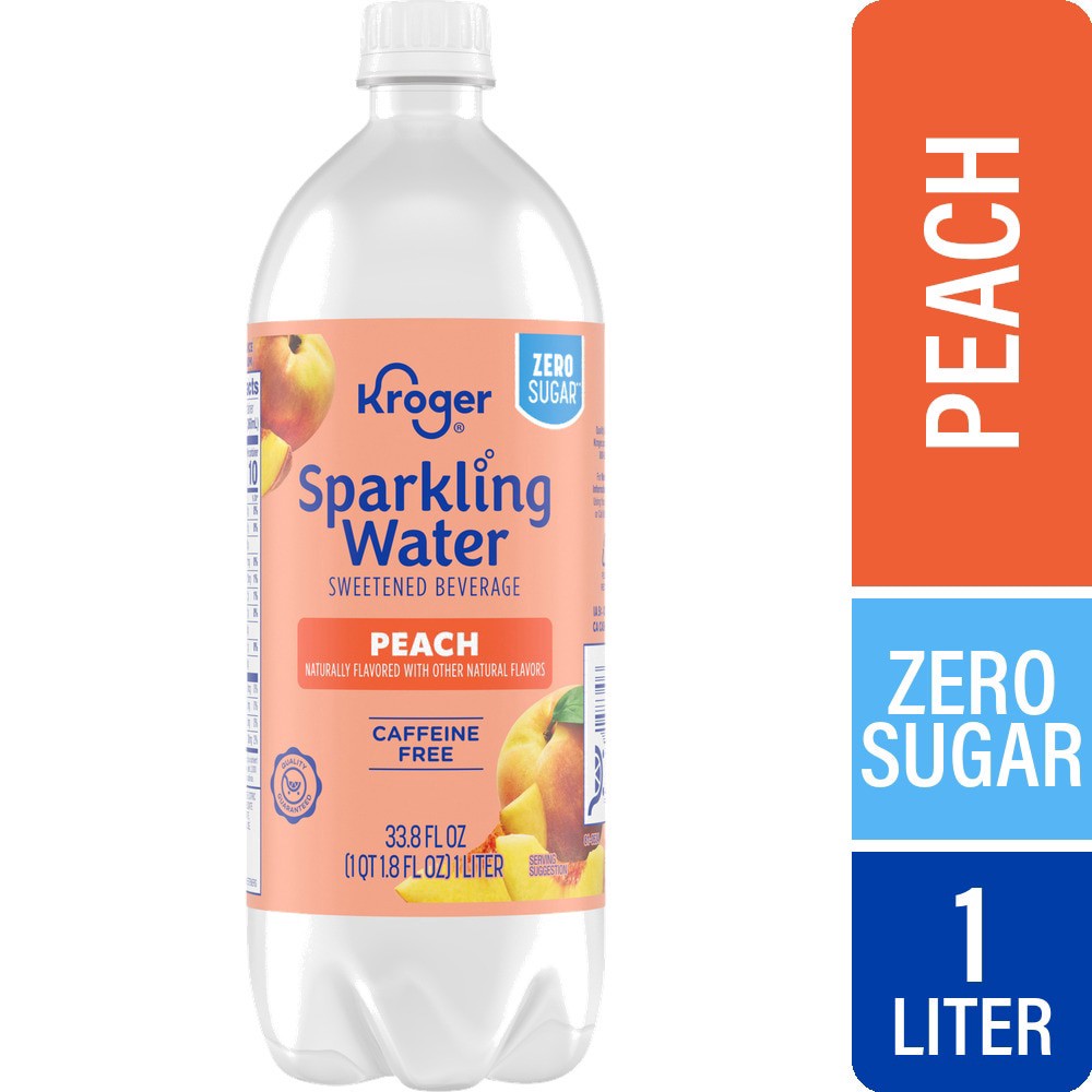 Kroger® Zero Sugarˆ Peach Sparkling Water is a fizzy delight! Discover sweetened, bubbly carbonated water with bold peach flavor. Sparkling water doesn't have to be boring! Enjoy this zero sugarˆ, caf…