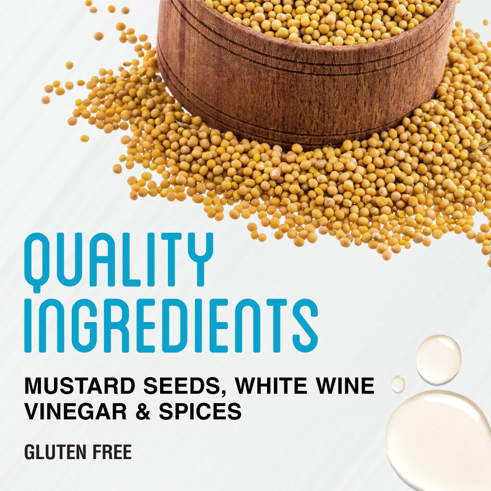 Water, Mustard Seed, Vinegar, Salt, White Wine, Citric Acid, Turmeric, Tartaric Acid, Spices.