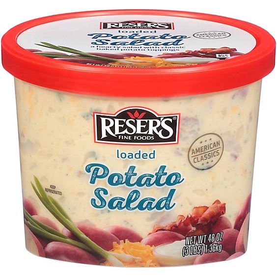 Love baked potatoes with all the fixings? Then you''ll love Reser's Loaded Potato Salad! This salad is made with diced Russet potatoes, bits of hearty bacon, thick shreds of cheddar cheese and a cream…