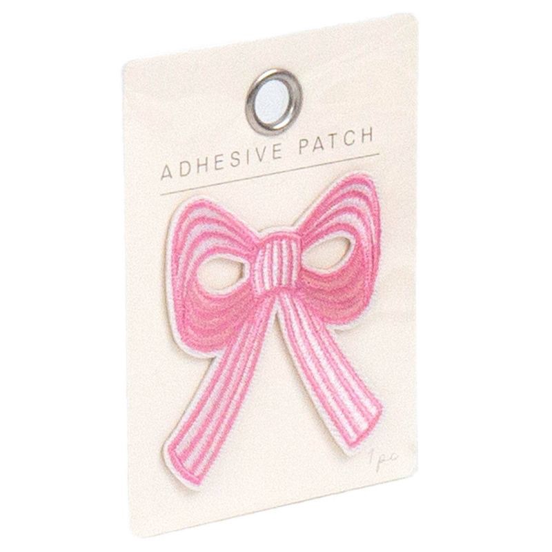 - Soft, sweet, and effortlessly stylish, this pink and white bow adhesive patch is a must-have embellishment for apparel and accessories.